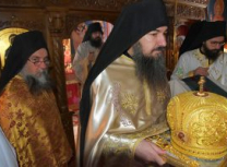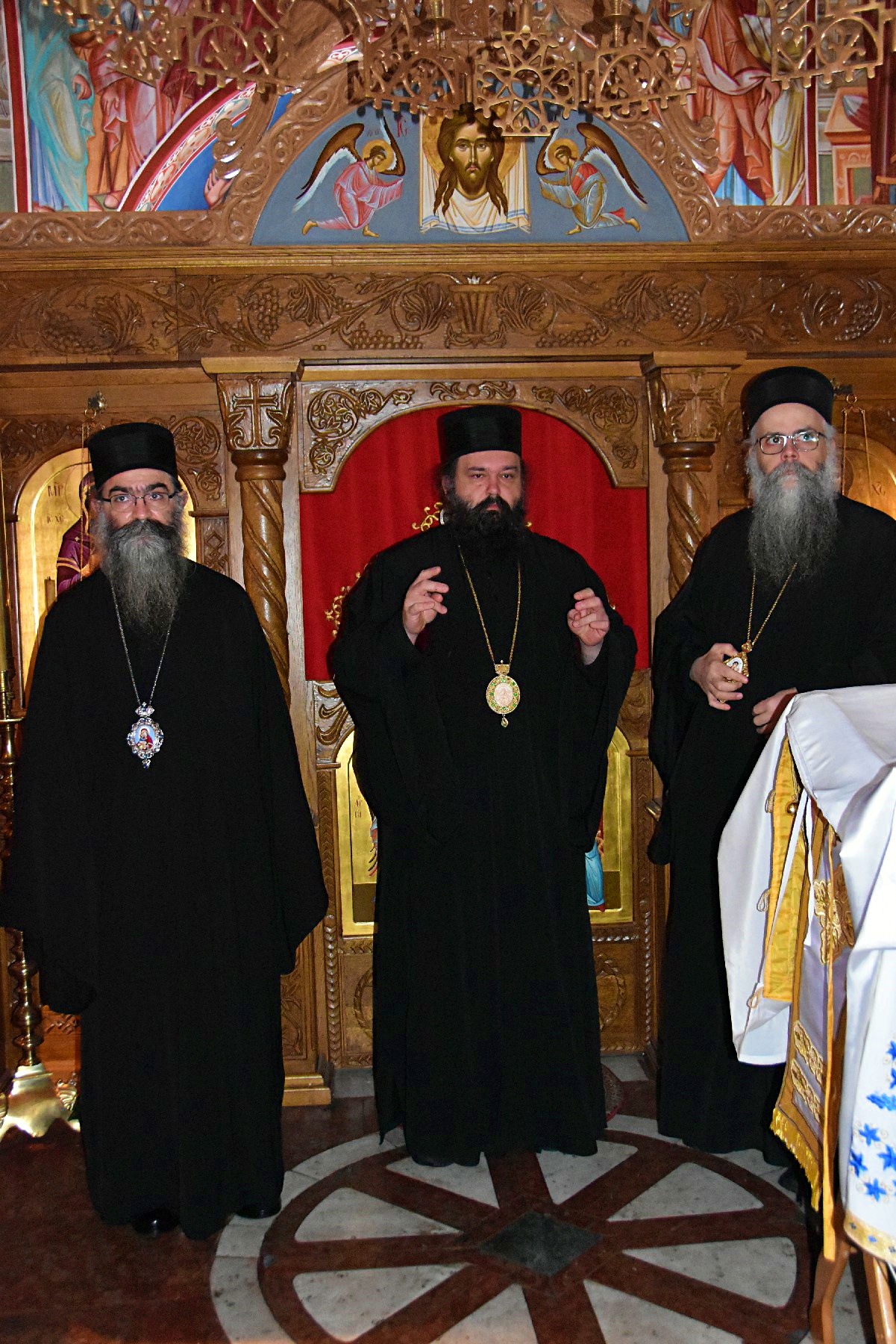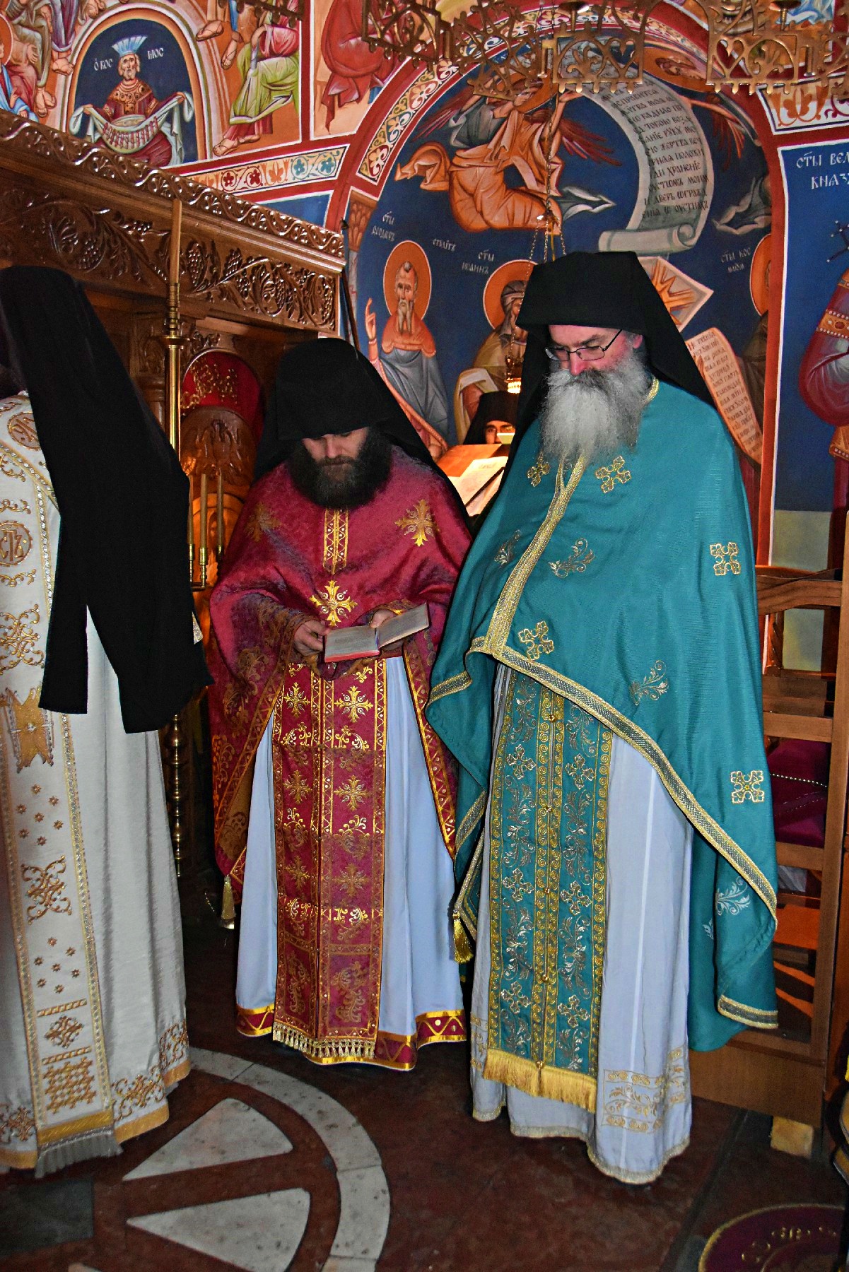 По благослову нашег старца који је замонашио нашег садашњег предстојатеља, Епископа Ксенофонта, и наш предстојатељ и Епископ носи име овог дивног, побожног и великог угодника Божијег преподобног Ксенофонта, и ми смо се данас сабрали да прославимо спомен Светог Ксенофонта али и имендан нашег епархијског архијереја владике Ксенофонта. Прослављајући ове свете угоднике Божије молимо се Богу, молимо се њима да Господ и нашем преосвећеном владици Ксенофонту да све оне дивне јеванђелске врлине, да украшавајући своју сопствену душу тим јеванђелским врлинама и он буде тај мудри неимар и мудри управитељ који управљајући сопственом душом испоравно јеванђелски православно, хришћански уз Божију помоћ да управља и повереном епархијом да управља и нашим душама које су њему од Бога и од нашег старца поверене на управљање. Нека Господ Бог молитвама Светог Ксенофонта и нашег владику Ксенофонта у том светом узвишеном пастирском делу укрепи и оснажи на многаја и благаја љета. Срећан имандан преосвећени владико. Ис пола ети деспота, на многаја љета.“