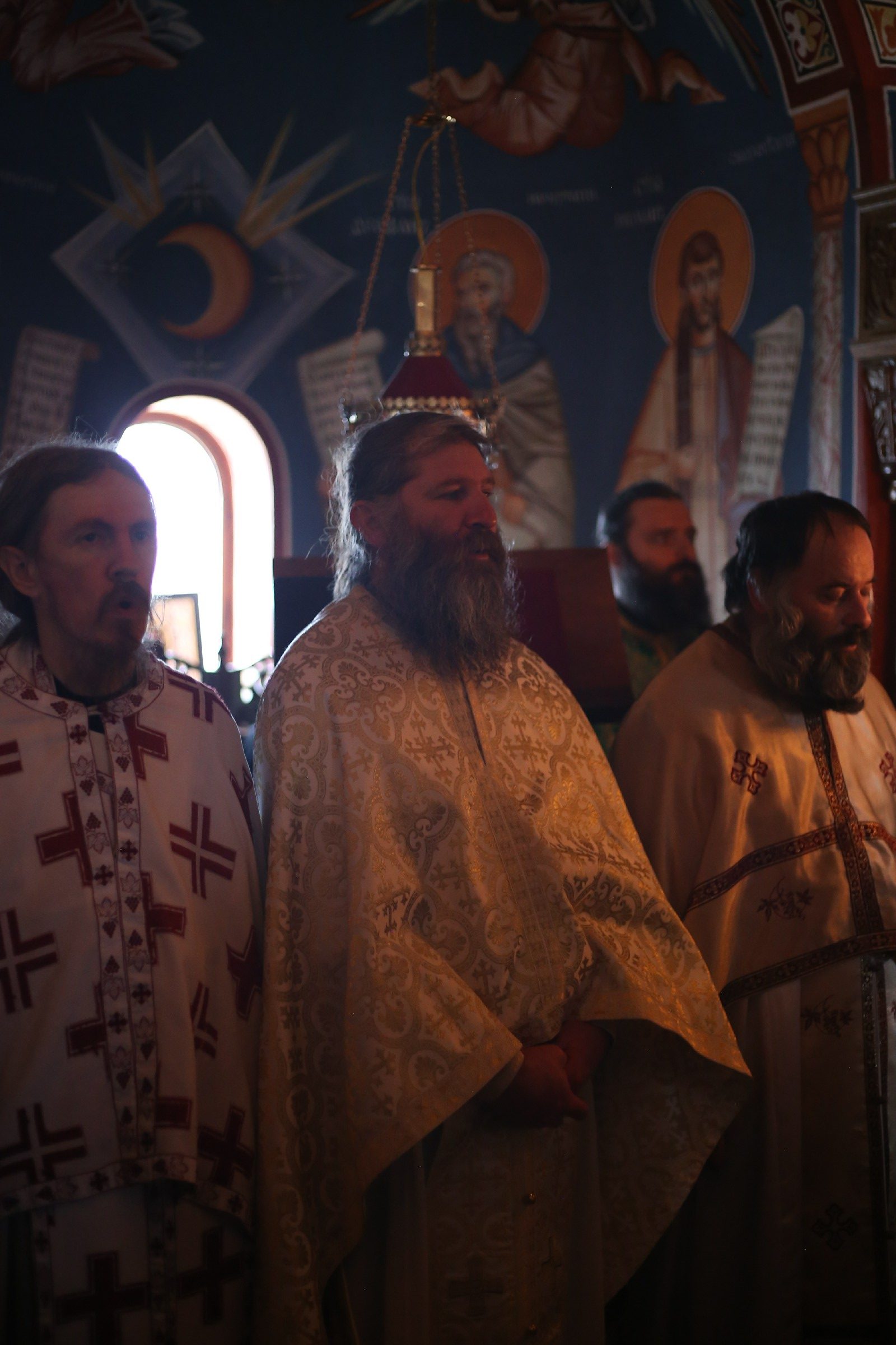 Чин благосиљања славског колача и кољива, које је у славу и част свог небеског заштитника Преподобног Ксенофонта принео слављеник – Владика Ксенофонт, извршио је Преосвећени Владика Николај а присутном народу се архипастирском беседом обратио Преосвећени Владика Максим. У својој беседи владика је поред осталог рекао: