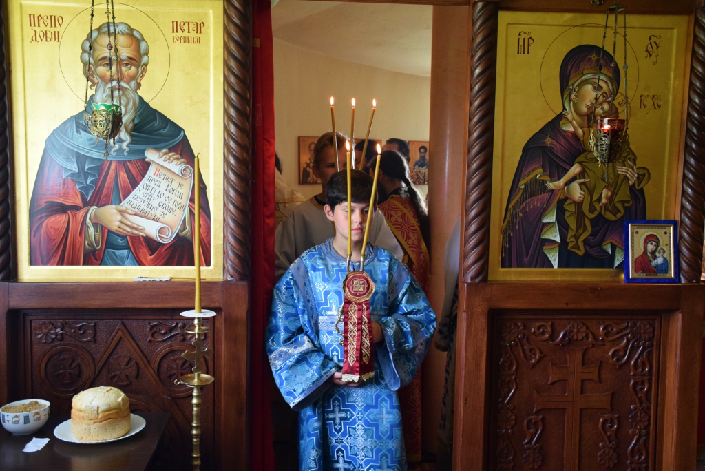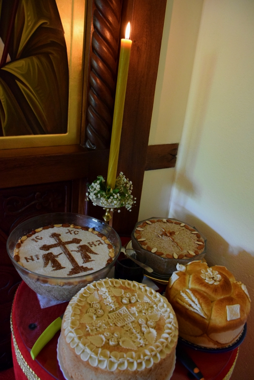 Након Литургије владика Николај је извршио чин резања славског колача и благосиљања жита које су у част Преподобног Петра Коришког принели братство манастира и овогодишњи домаћини славе: Снежана Хаџи-Станковић из Крагујевца и Горан Јосијевић са Каблара. За наредну годину пријавио се: Мирослав Јовановић из Горњег Милановца.