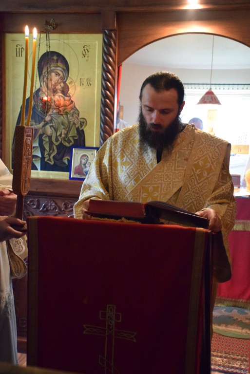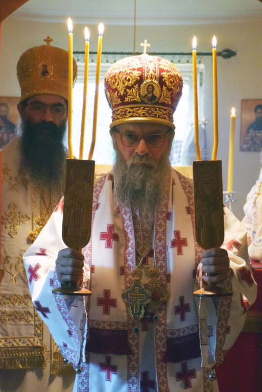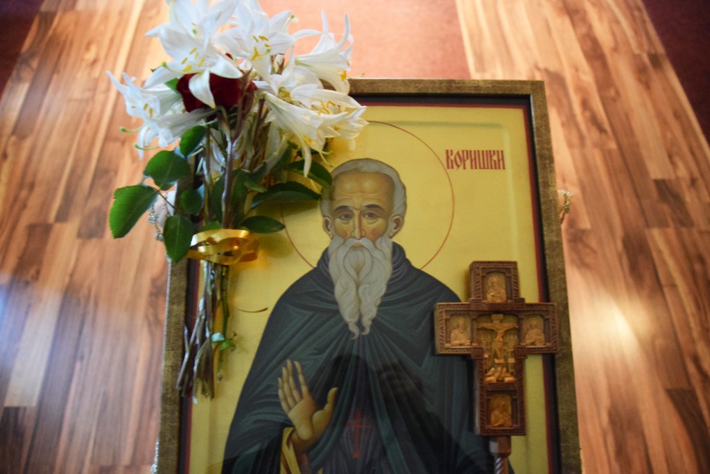 Затим се присутном народу веома надахнутом архијерејском беседом обратио владика Николај. У својој беседи владика је говорио о светим врлинама које треба да красе хришћанина да би он достигао свој циљ – задобијање благодати Духа Светог. При томе је преосвећени владика као пример делатног ходања у врлинама навео подвиг Преподобног Петра Коришког.