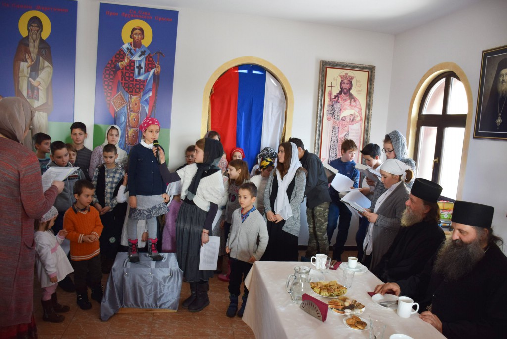 Уследила је трпеза љубави за све присутне. У току трпезе љубави одржана је традиционална светосавска приредба на којој су се могли чути дивне песме о светом Сави декламоване од стране најмлађих светосаваца катакомбе. Потом је владика Наум свој деци поделио пригодне поклоне.
