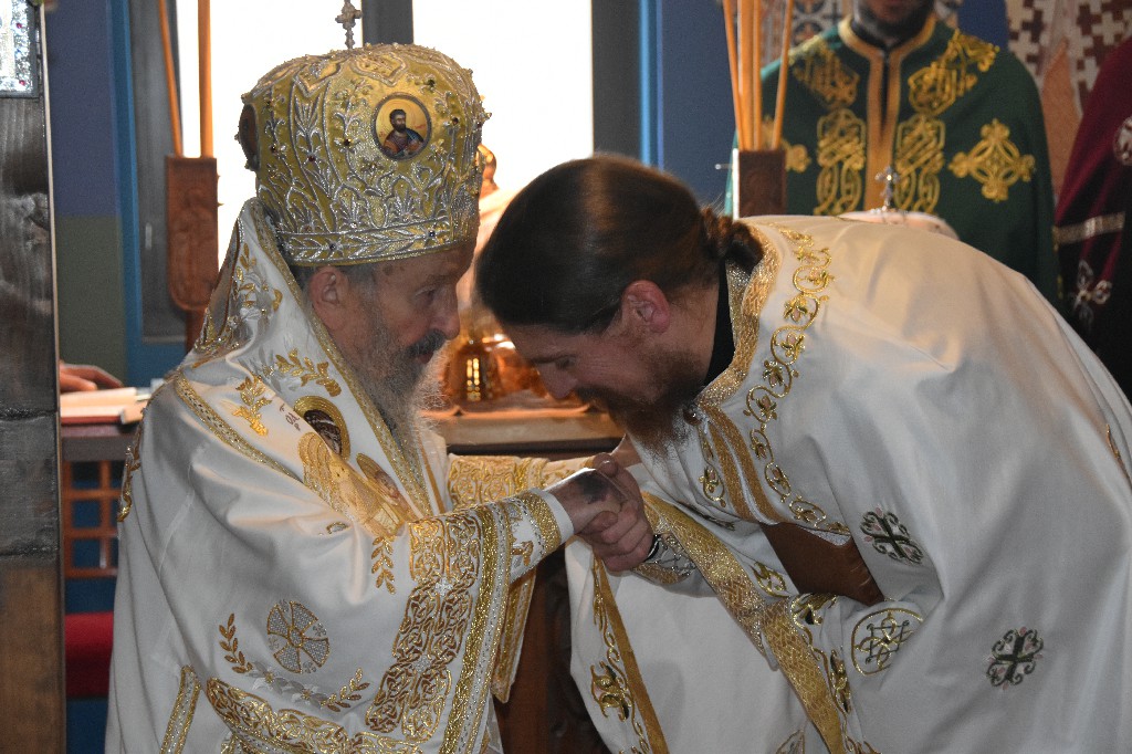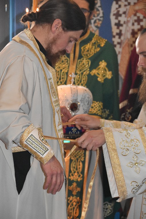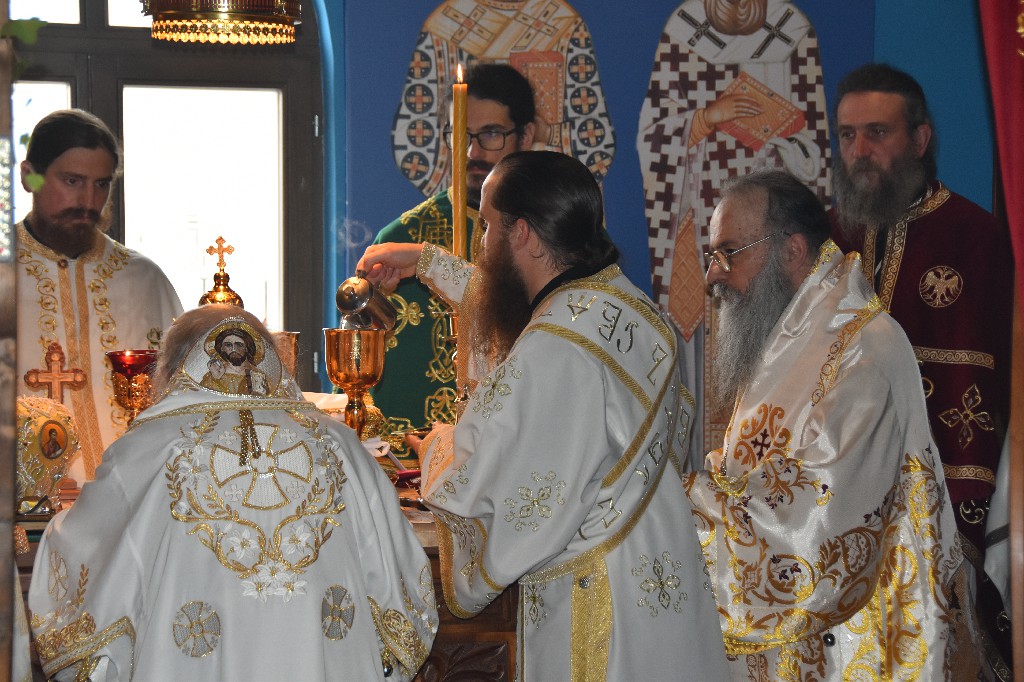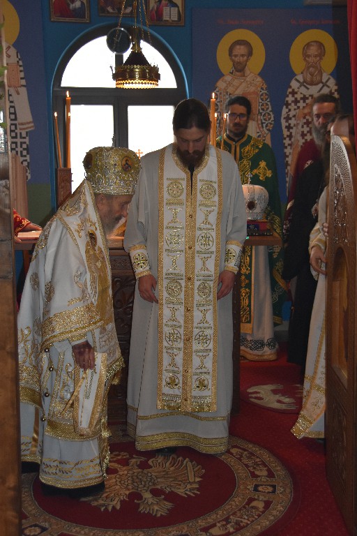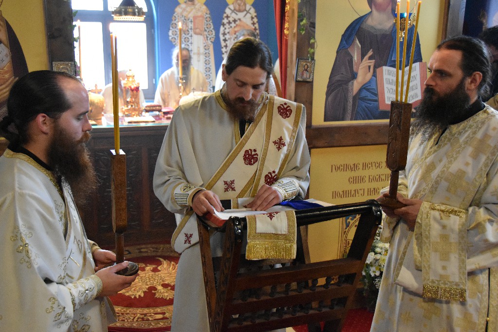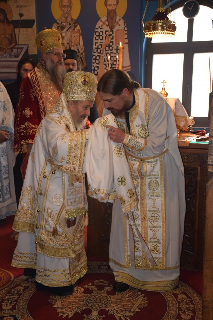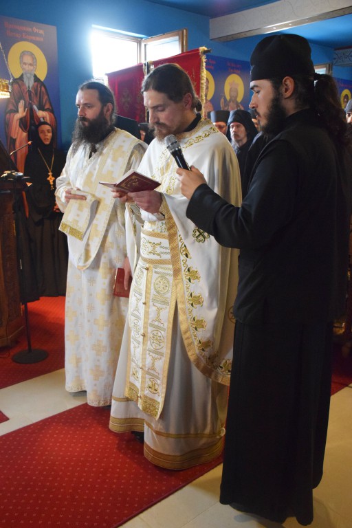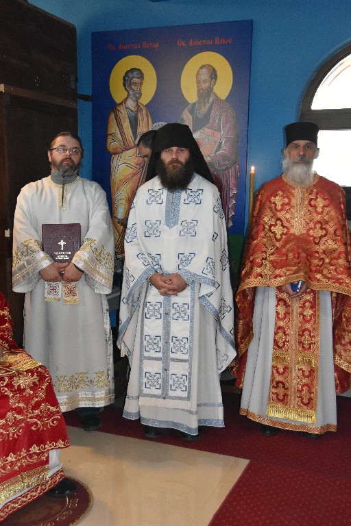 У току Литургије Владика Артемије је у чин јеромонаха рукоположио јерођакона Петра (Проса) сабрата манастира Преподобног Јустина Ћелијског у Барајеву.