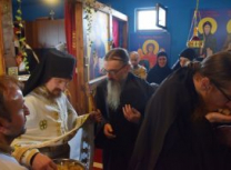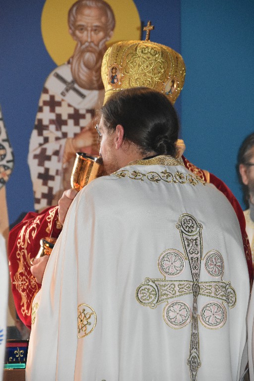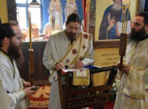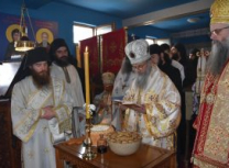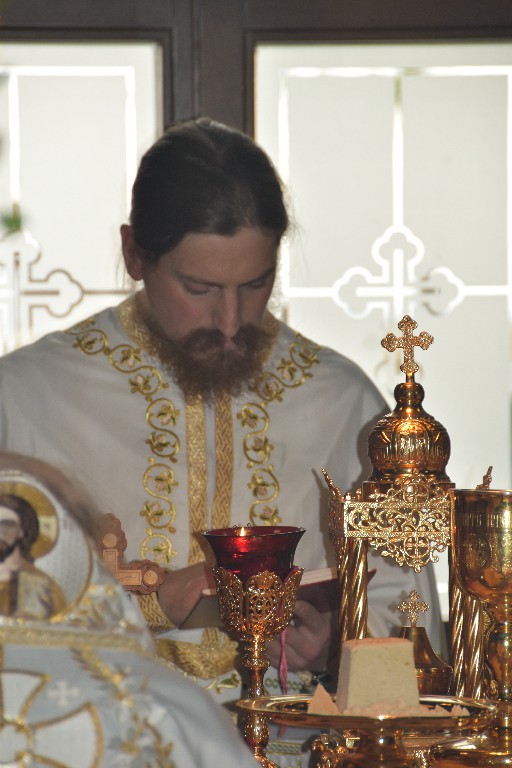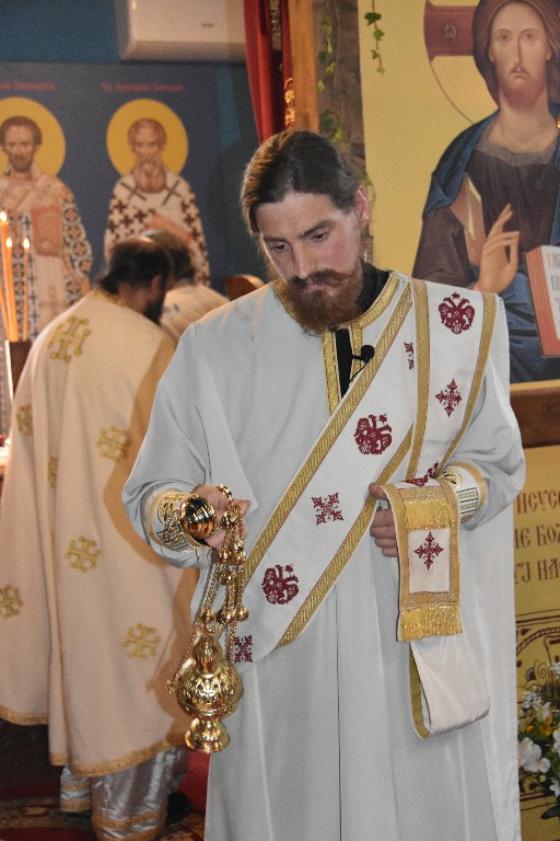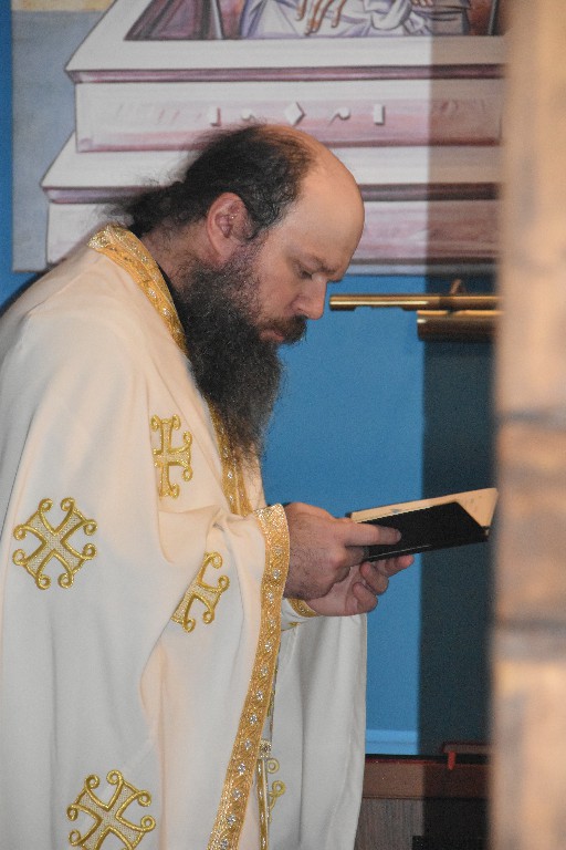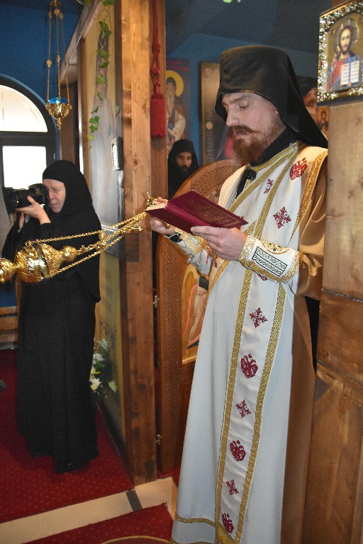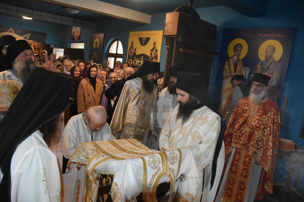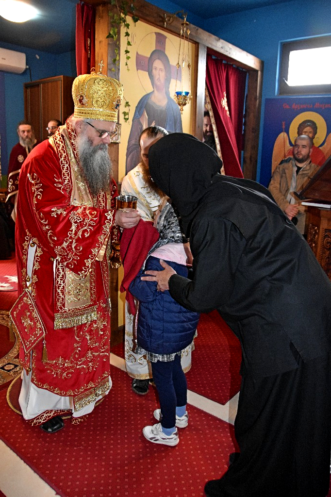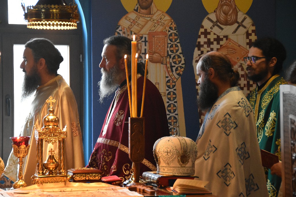 У току Литургије Владика Артемије је у чин јеромонаха рукоположио јерођакона Петра (Проса) сабрата манастира Преподобног Јустина Ћелијског у Барајеву.