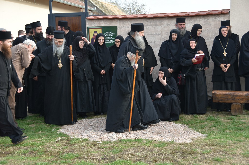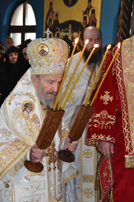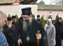 „Прошлих година сте, преосвећени Владико, прослављали имендан у манастиру који је посвећен Вашем духовном оцу, Светом Јустину Ћелијском. Ове године га прослављате у манастиру који је посвећен Вашем духовном сину, Светом Преподобномученику Харитону Косовском. Ја не знам епископа у ближој и даљој историји са таквим благодатним даром да је изградио храм и духовном оцу и духовном сину и у њима приносио Бескрвну Жртву. Но то је Ваш први благодатни дар. Господ Вам је дао још један благодатни дар, а то је да у ово наше време обновите српско монаштво, да наставите свети посао који је започео Свети Сава а наставио Свети Николај Жички. Имате и трећи благодатни дар, највећи од свих – крст прогона правде ради. Апостол Павле пише Филипљанима: “Вама је даровано за Христа не само да у Њега верујете, него и да страдате за Њега“. Страдање за Господа назива даром. По том небеском дару препознајемо да сте истинити пастир Христов. Да нема тога, све би било сумњиво. Апостол рече: “А сви који хоће да живе побожно у Христу Исусу биће гоњени“. Крст прогона је печат који Вам је Господ дао. Крст је печат изабраности сваког хришћанина, сваког хришћанског народа и сваког Христовог епископа. И ми гледајући Ваше благодатне дарове, благодаримо Богу што имамо таквог епископа и духовног оца. Благодаримо и Вама, преосвећени владико, на показаној љубави, труду, стрпљењу око обделавања наших душа. То није мали труд. То је још један Ваш Крст… Молимо се Богу да Вас укрепи у Вашој архипастирској служби, молимо се Богу да Вам да снаге, мудрости и силе, да и Ви својим подвигом и животом прославите Господа и да се по изласку из тела нађете тамо где су Свети Артемије, Свети Јустин, Свети Харитон, Свети Сава и сви Свети из рода нашег.