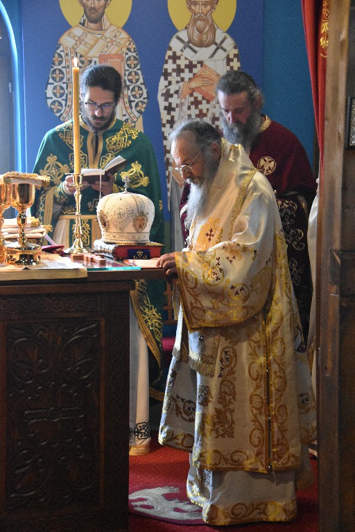 Чин благосиљања славског колача и кољива, које је у славу и част свог небеског заштитника Светог Артемија принео слављеник – Владика Артемије, извршио је Преосвећени Владика Николај а присутном народу се архипастирском беседом обратио Преосвећени Владика Максим. У својој беседи владика је поред осталог рекао: