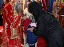 Пре почетка Литургије Владика Артемије је благословио облачење подрасника искушеници Мири Милобратовић из сестринства манастира Свете Великомученице Марине у Дудовици. Сестра Мира је ктиторка манастира у Сурдуку.