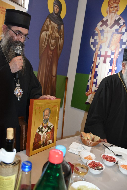Након Литургије уприличена је трпеза љубави за све присутне. Пригодном беседом се овом приликом обратио Преосвећени Хорепископ Наум. После упућених честитки у име свештенства, монаштва, верног народа и у своје лично име Владика Наум је додао: