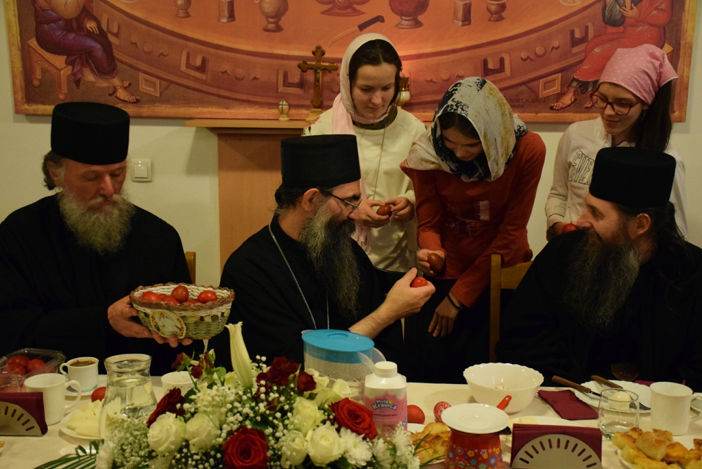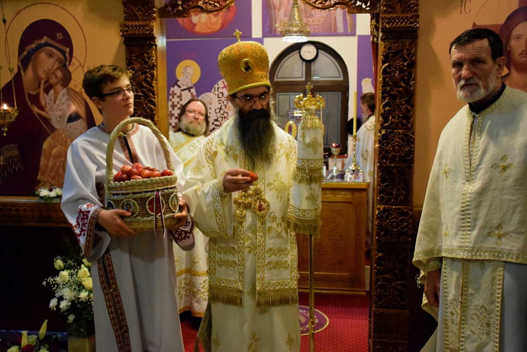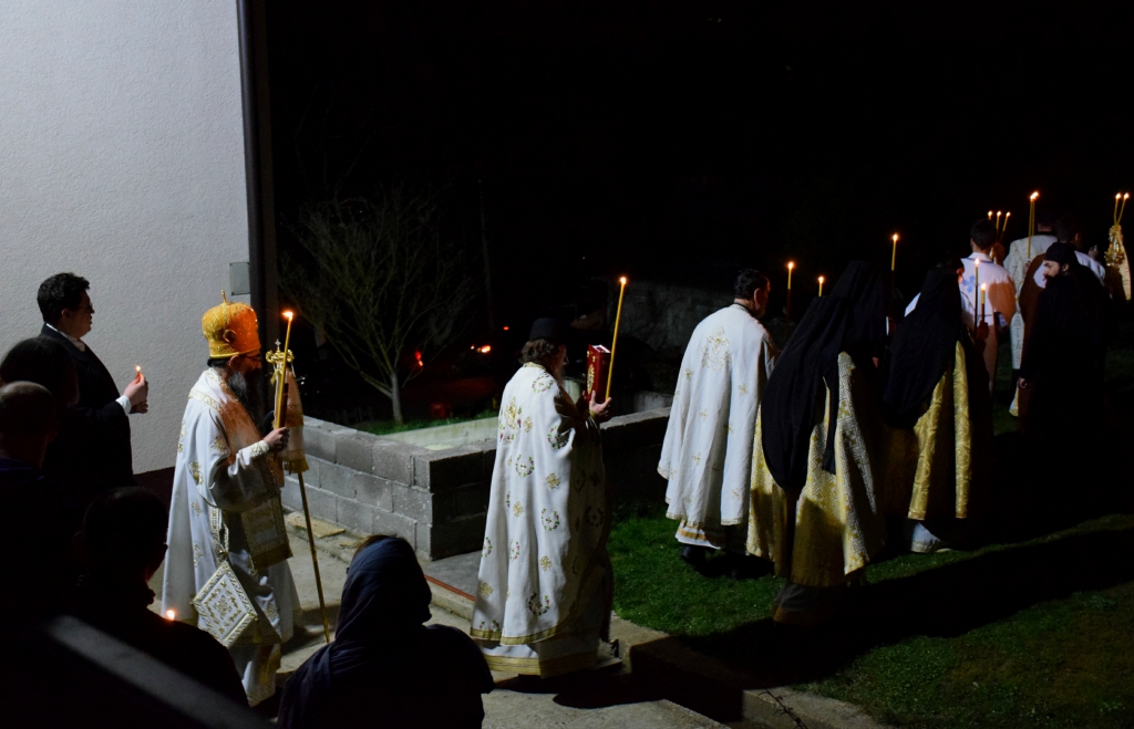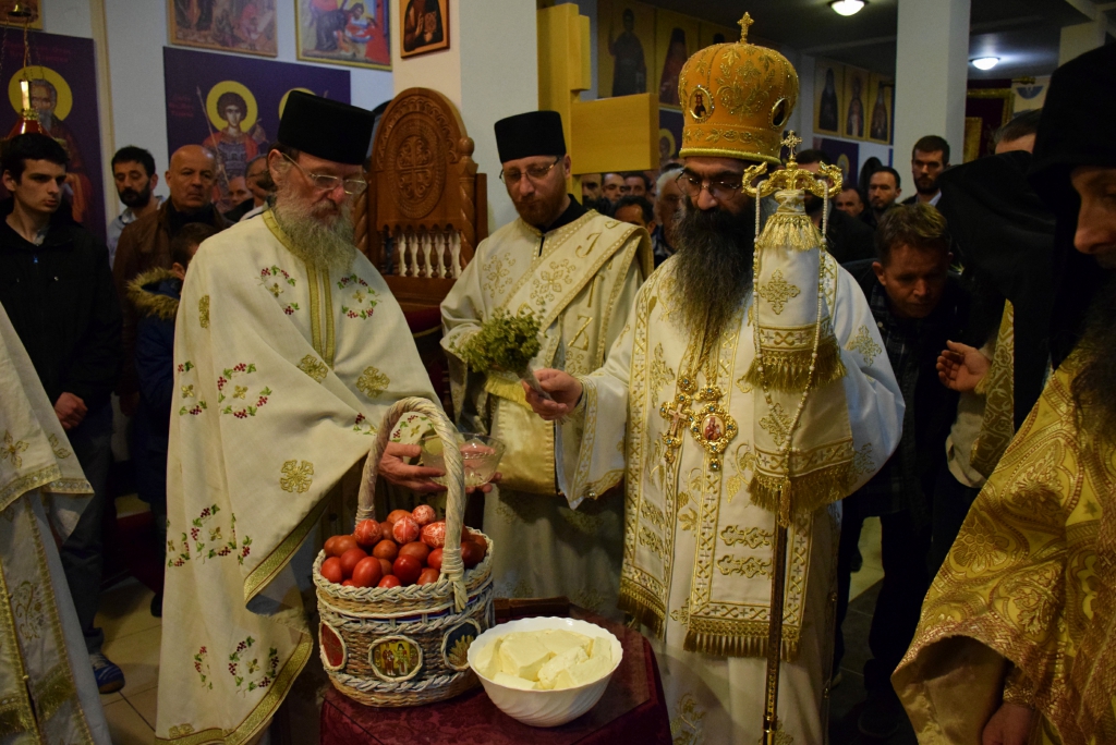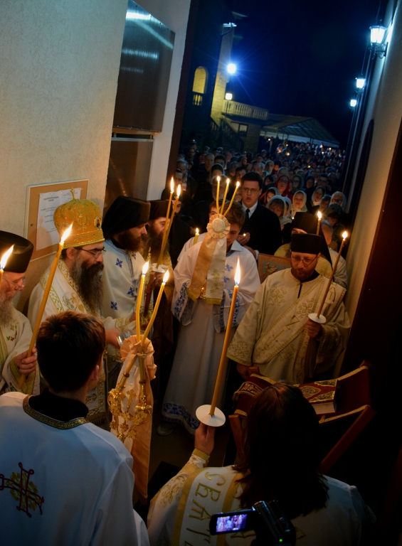 У манастиру Преподобног Јустина Ћелијског у Барајеву, Свету Архијерејску Литургију служио је Његово Преосвештенство хорепископ хвостански и барајевски Г.Г. Наум уз саслужење  протојереја Жељка (Марића), протосинђела Иринеја (Ристића), протосинђела Игњатија (Станића), протојереја Ђорђа (Илића), јеромонаха Јакова (Купрешка), ђакона Виктора (Павлова) и ђакона Горана (Калушевића). Литургији је присуствовало преко 550 верника углавном из Београда и околине, а преко 400 њих се сјединило са Господом кроз Свето Причешће. После Свете Литургије Владика Наум је обавио чин благосиљања сира и јаја. Уследило је послужење на коме је манастирски хор извео пригодни Васкршњи програм.