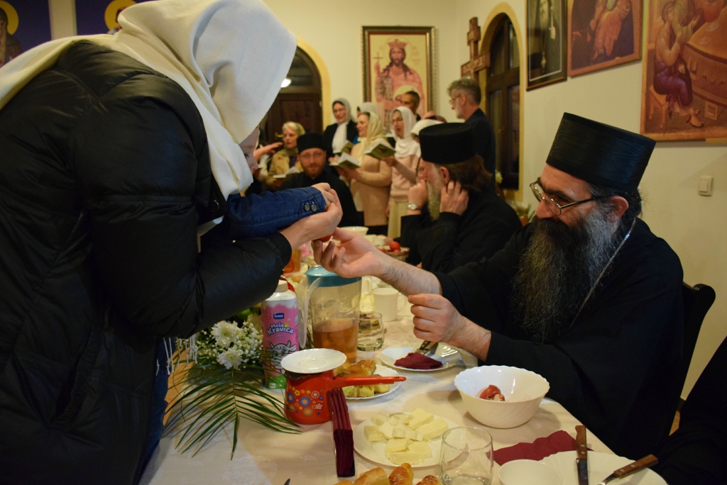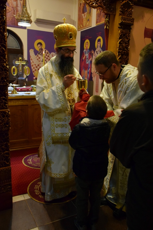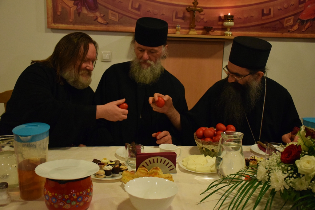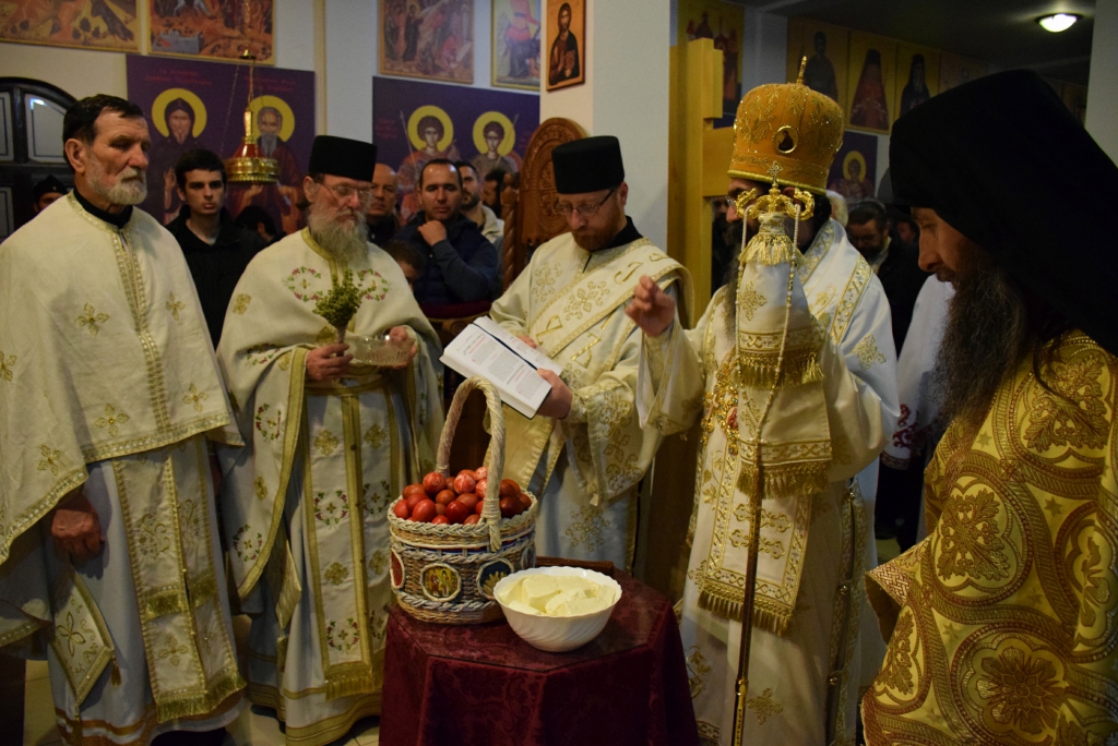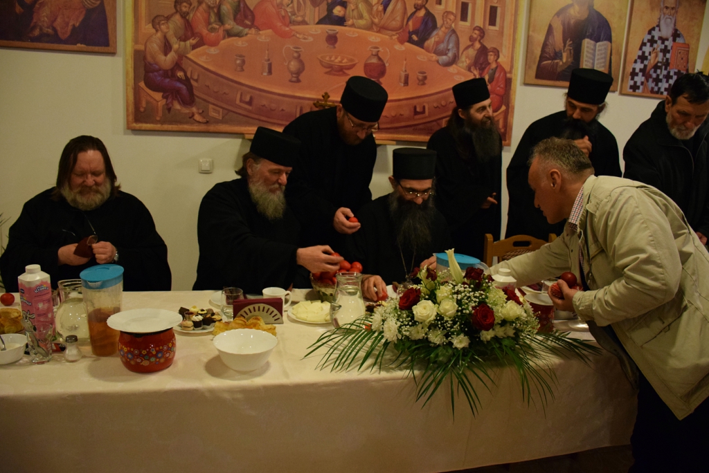 У манастиру Преподобног Јустина Ћелијског у Барајеву, Свету Архијерејску Литургију служио је Његово Преосвештенство хорепископ хвостански и барајевски Г.Г. Наум уз саслужење  протојереја Жељка (Марића), протосинђела Иринеја (Ристића), протосинђела Игњатија (Станића), протојереја Ђорђа (Илића), јеромонаха Јакова (Купрешка), ђакона Виктора (Павлова) и ђакона Горана (Калушевића). Литургији је присуствовало преко 550 верника углавном из Београда и околине, а преко 400 њих се сјединило са Господом кроз Свето Причешће. После Свете Литургије Владика Наум је обавио чин благосиљања сира и јаја. Уследило је послужење на коме је манастирски хор извео пригодни Васкршњи програм.