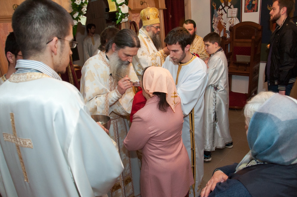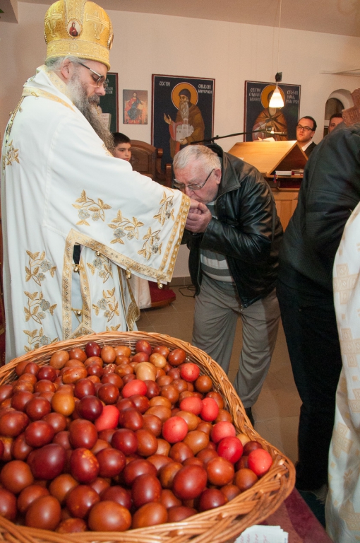 У манастиру Свете Тројице у Кули, Васкршњу Литургију је служио Његово Преосвештенство хорепископ новобрдски и панонски Г.Г. Максим уз саслужење јеромонаха Никодима (Малешевића), јерођакона Пајсија (Марковића) и ђакона Славена (Стевановића). Литургији је присуствовало око 250 верника углавном из српске Војводине, а око 150 њих се причестило Пресветим Тајнама Христовим. Након Свете Литургије Владика Максим је обавио чин благосиљања сира и јаја. Уследило је послужење за све присутне.