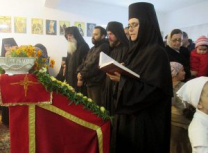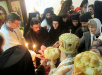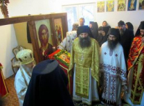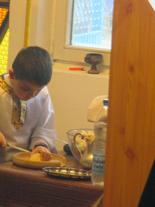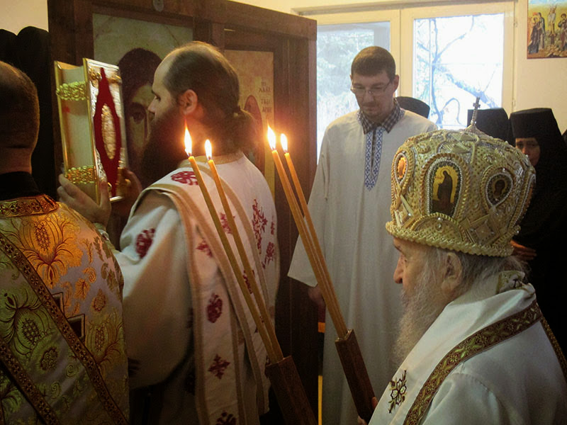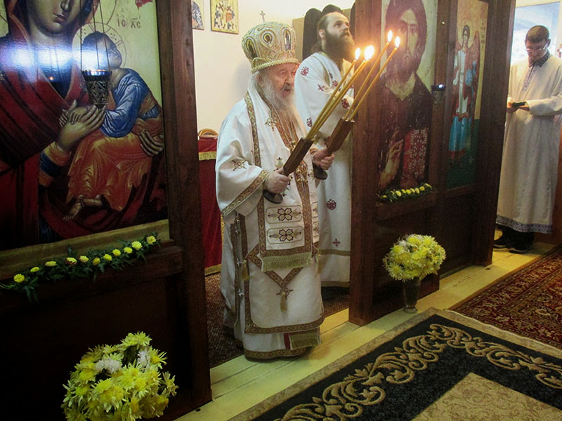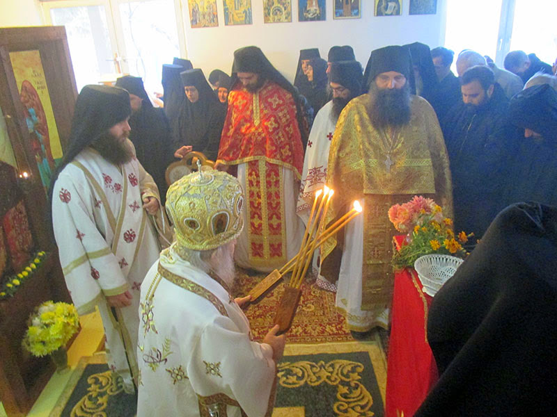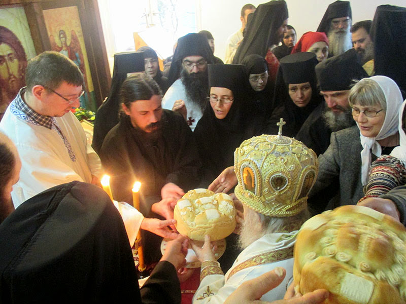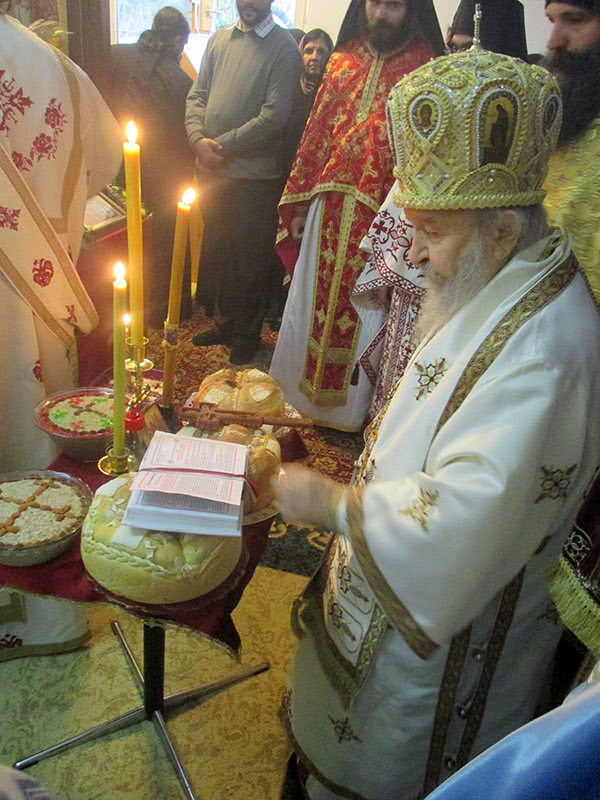 Владика Артемије је извршио чин сечења славских колача, које су поред настојатеља Катакомбе, протосинђела Јована, припремили и домаћни славе Милан и Милена Цветковић из Ниша, као и монах Михаило и монахиња мати Михаила који су прославили свој имендан, и искушеница Милена своју крсну славу.