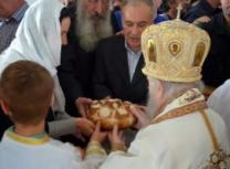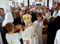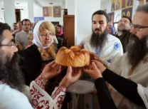 Владика је извршио чин сечења славског колача и благосиљања кољива, које су припремили домаћини овогодишње славе Снежана Антонијевић и Слађан Арсић.
