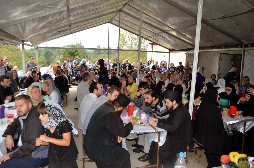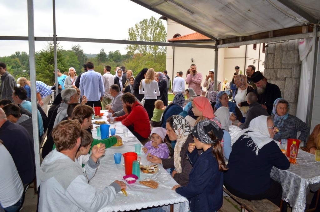 Након Свете Архијерејске Литургије, приређена је трпеза љуваби, коју су припремили домаћини славе као и протосинђел Наум, са својом братијом.