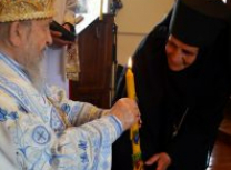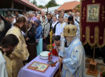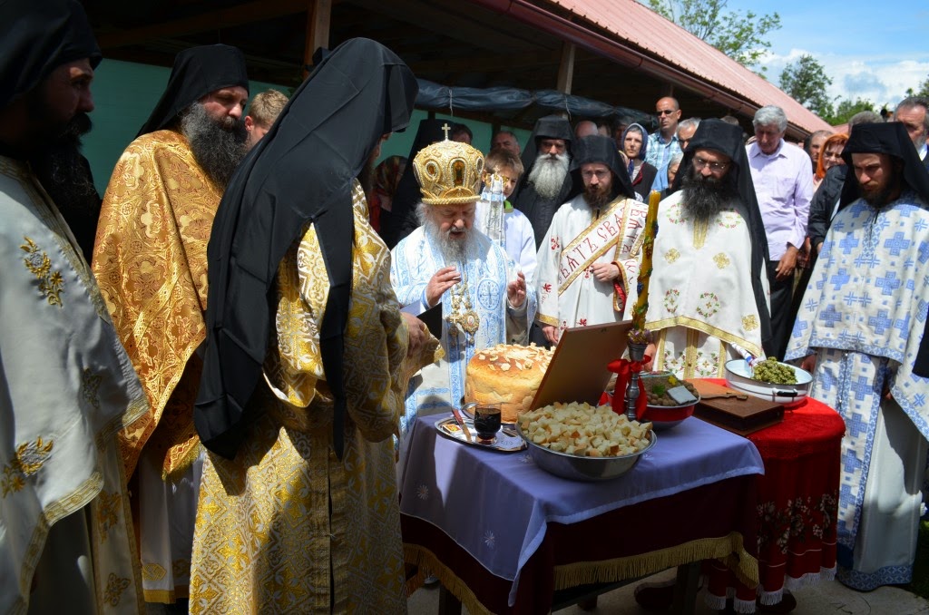 Владика је извршио чин сечења славског колача и благосиљања кољива, које је спремила игуманија Јелена.