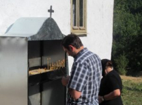 Првој Светој Литургији на празник патрона катакомбе Светог пророка Илије, присуствовало је седамдесетак верника из Косанице, Топлице и Ниша. Славски колач је ове године припремио домаћин овога дома Југослав Ивић са братом Милославом. После Свете Литургије и резања колача, као и беседе у којој је наглашено значење жртве у нашем духовном животу, као и пример жртве светог новомученика Харитона Црноречког и Архангелског, који је пореклом из овог краја, уследио је мали предах и трпеза љубави на којој је и брат Југослав прочитао кратко образложење о томе шта га је побудило да свој дом преда ЕРП у егзилу и епископу Артемију. У свом слову, брат Југослав, који је војно лице у пензији, је навео своје разочарење због страдања и распарчавања Србије, као и због погрешних вредности које су данас у нашој отаџбини на цени. Као главну опасност из које проистичу све негативне последице и урушавање српског друштва, он види у глобализму и екуменизму чије вредности на нашим просторима проповедају разне невладине организације, а прихватају појединци који би требало да штите народ од оваквих заблуда. Такође, брат Југослав је нагласио и погубни утицај папизма на растакање српског друштва.