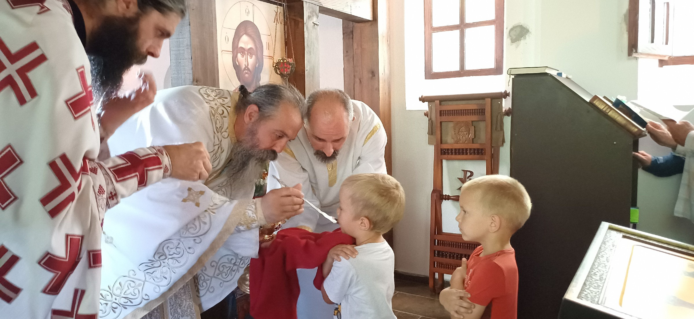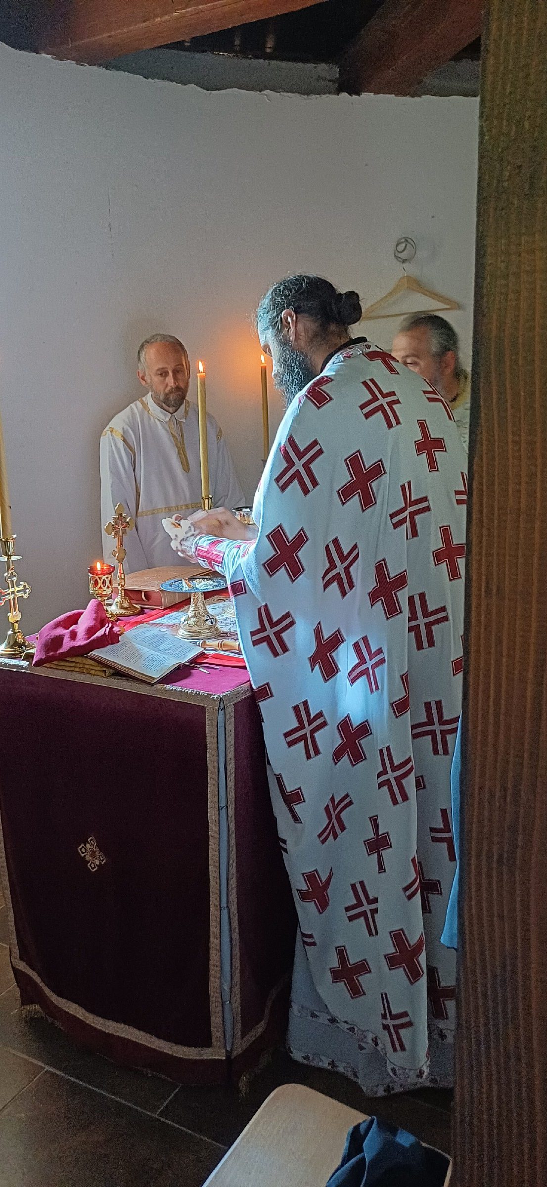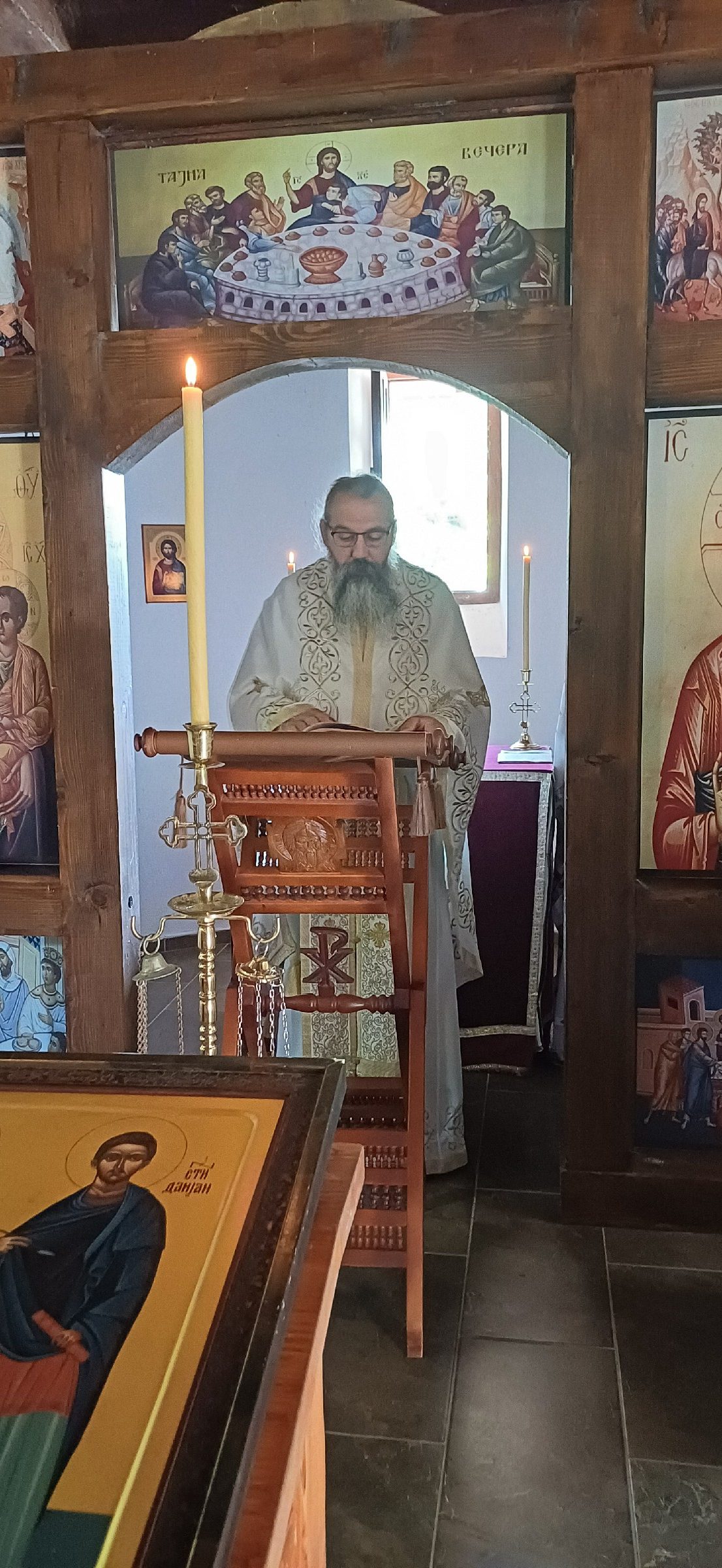 У недељу 14. јула, са благословом Његовог Преосвештенства Епископа рашко-призренског у егзилу Г.Г. Ксенофонта, а по позиву домаћина и ктитора Светислава Чупића, служена је Света Литургија у храму посвећеном светим мученицима и бесребреницима Козми и Дамјану.