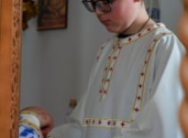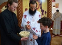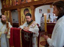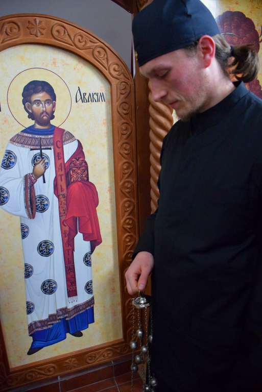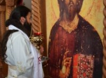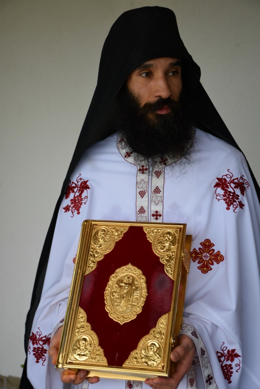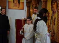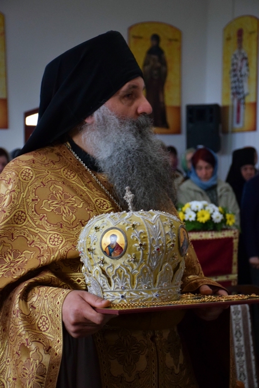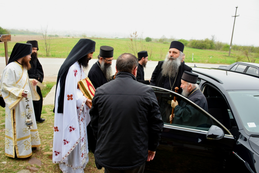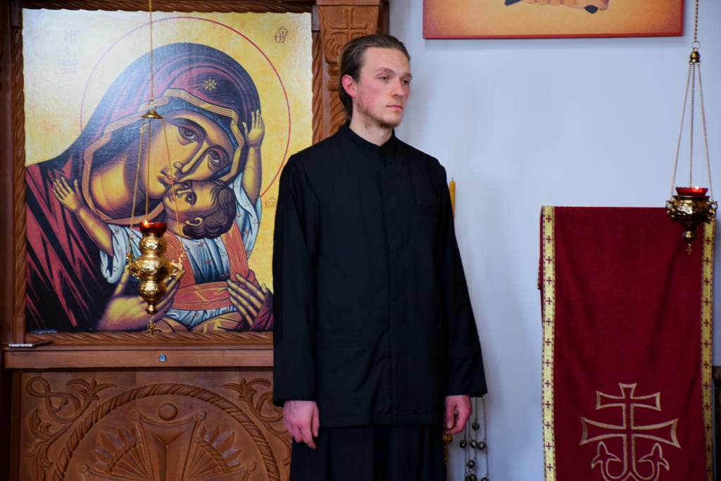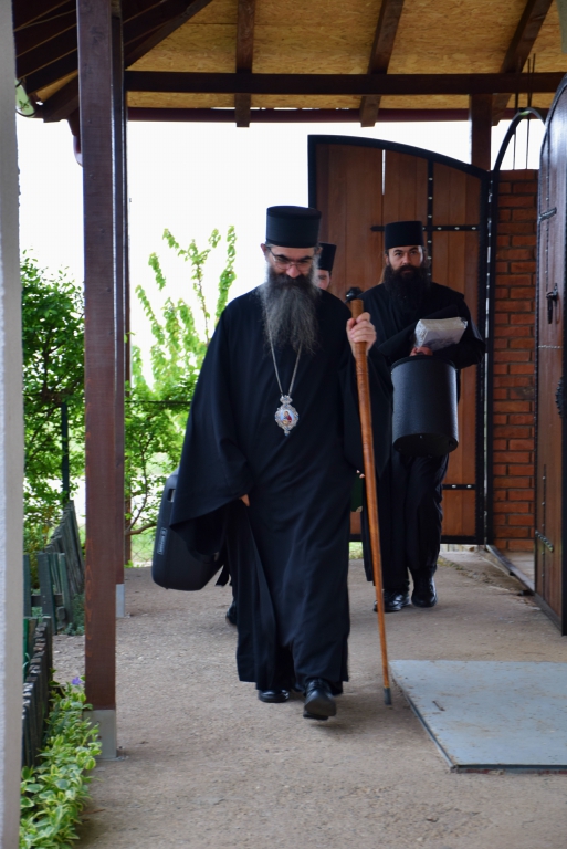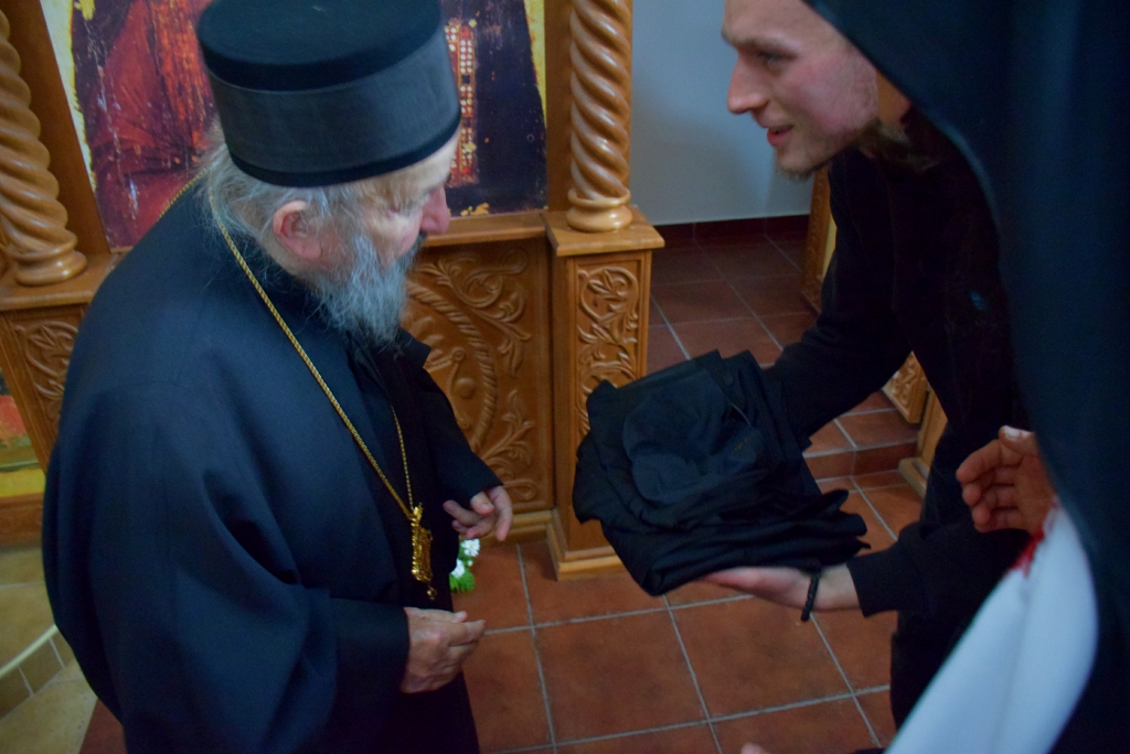 Пре почетка Литургије Владика Артемије је благословио облачење подрасника Николи (Ђорђијевском), искушенику овог манастира.