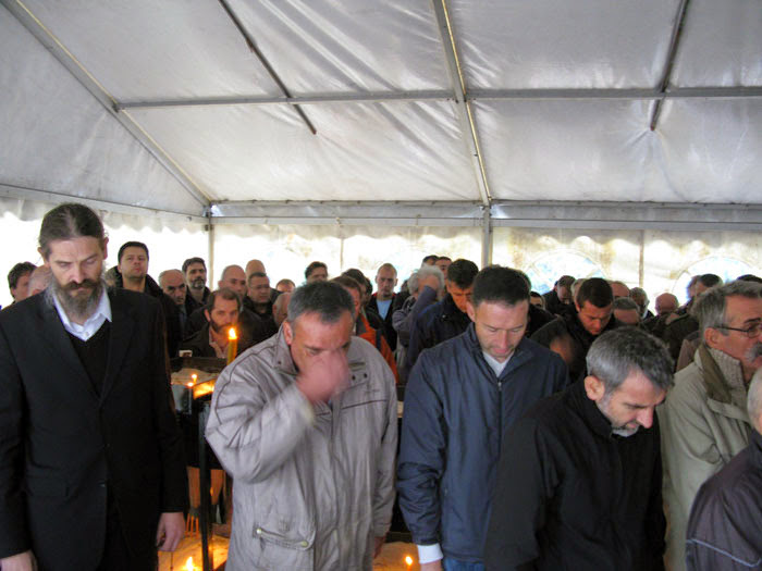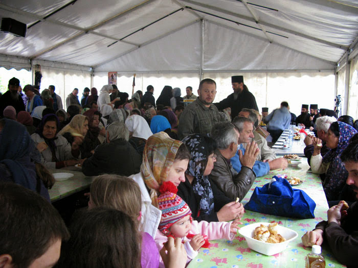 Након свете Литургије, такође под шатором, настојатељ и братија монашке обитељи светог Јустина Ћелијског организовали су скромно послужење и укрепљење за све присутне вернике.