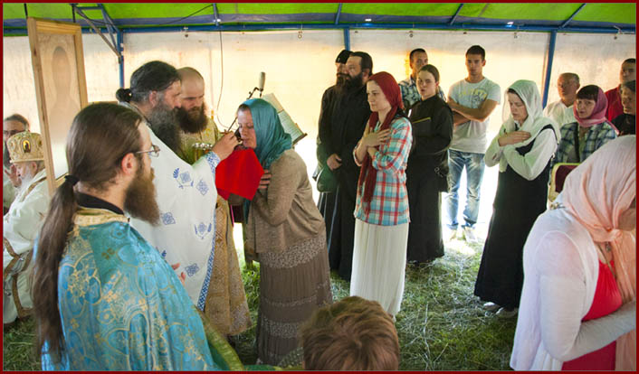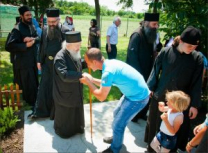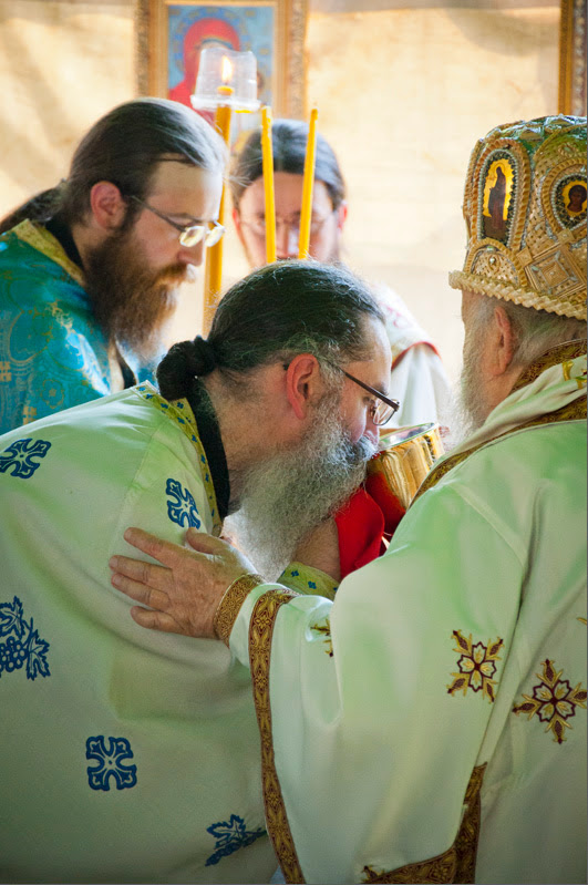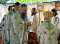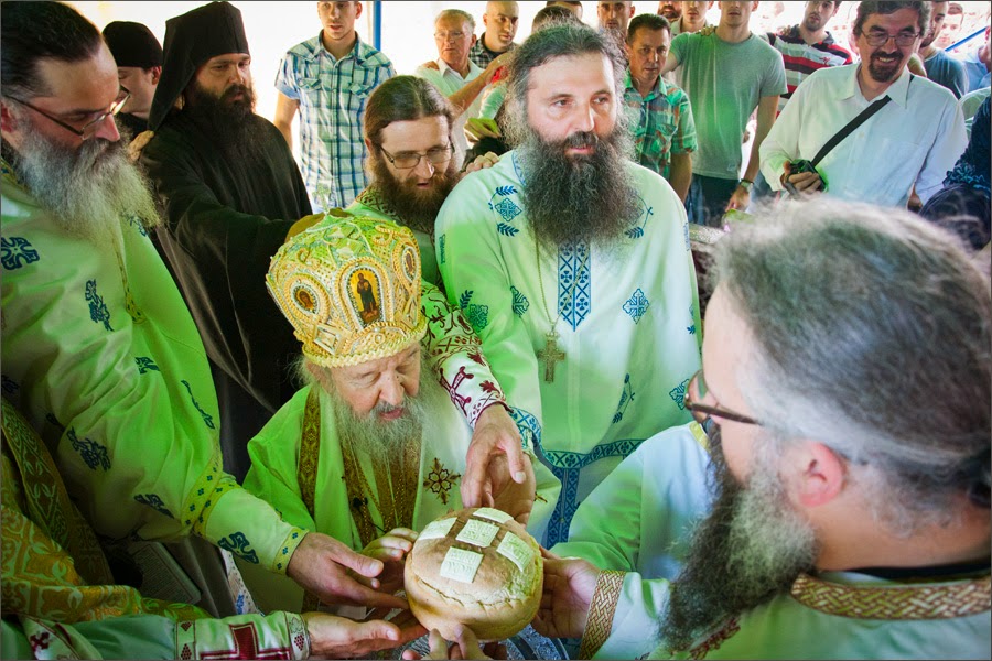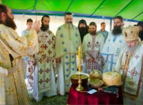 Епископ је извршио чин резања славског колача и благосиљања кољива, који су поред домаћина славе припремили протосинђел Максим, настојатељ Катакомбе са својом братијом у Христу.
