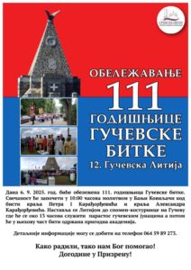 У суботу 6. 9. 2025. године одржаће се дванаесто традиционално обележавање успомене на Гучевску битку.