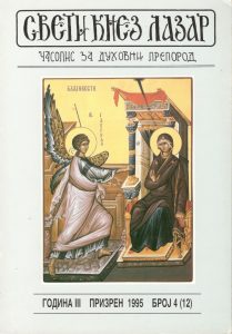 Извор: СВЕТИ КНЕЗ ЛАЗАР, ГОДИНА 1995, БРОЈ 4 (12), СТРАНЕ 145-155.