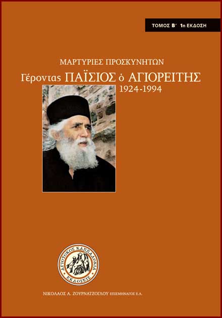 Недавно је објављена књига „Старац Пајсије Светогорац (1924-1994) – сведочанства поклоника“, том 2, издање Αγιοτόκος Καπαδοκία, Солун 2012.