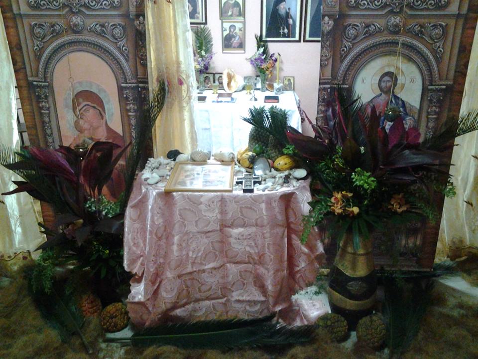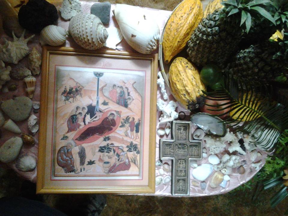 Сестре које су биле задужене за цвеће и украшавање богослужбеног места, то су учиниле на једини начин који знају – филипински. Божићне вазе и корпе су биле пуне филипинског цвећа и необичних украсних биљки, затим ананаса, банана, кокоса, какаоа, папаје, манга, а целивајућу икону и крст и део олтара су украсиле шкољкама из Тихог океана. Поред осталих специфичности прославе Божића на Филипинима, стекао сам утисак да је та два дана нарочито (на Бадњи Дан и Божић) било веома топло. Касније сам сазнао да је температура ваздуха овде на Божић достигла 33 °C, а због велике влажности ваздуха, реалан осећај је био да је пуно топлије…