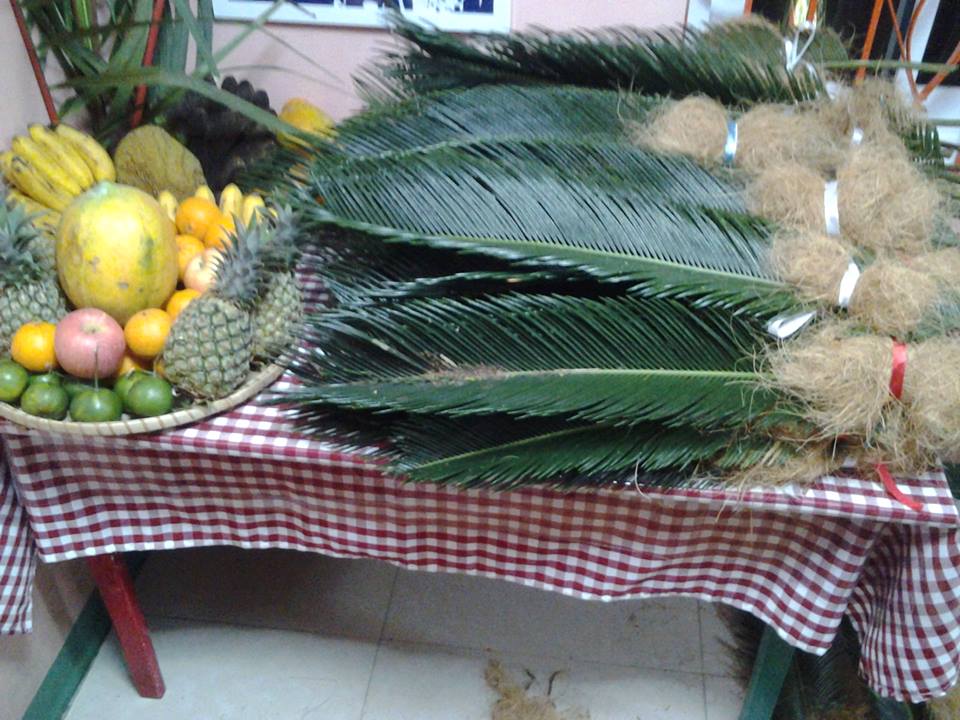 Дакле, храст овде не постоји. Нема ничега што би бар подсећало на храст, а палми постоји више стотина врста. На крају смо се одлучили да Бадњак овде може бити једино цикус-палма која нема велике листове и гране као већина других. Слама каква је нама позната – такође не постоји овде на пацифичкој обали. Препоручили су нам пиринчану траву која није била добра замена за сламу, а само неколико дана пред Божић, Господ нам је послао брата Атанасија – православног Филипинца који живи на селу и бави се производњом органске хране и који нас је научио да ће нам најбоље послужити слама од кокоса, коју локално становништво користи за производњу ужади.