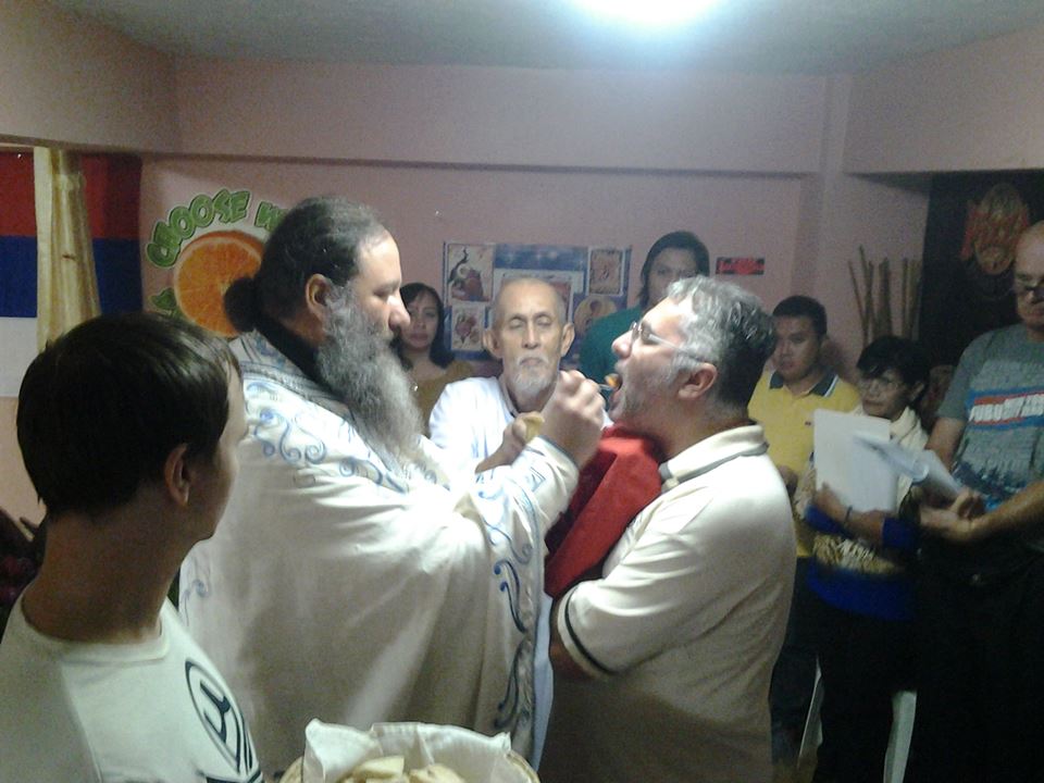 Пошто изобилно нахранисмо душе слављењем имена Божијег и молитвама Богомладенцу Христу у празничној радости, наши домаћини су се побринули и за свечану божићну трпезу састављену од српских и филипинских јела. Разишли смо се касно после подне у љубави хришћанској и узајамном поштовању. Моје уверење је (сада још више после предивног и сверадосног празника) да у овом делу света постоји пуно људи који трагају за истином Божијом и Правом Вером хришћанском, светоотачком, кроз коју се Господ Бог слави правилно – православно.