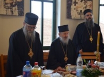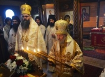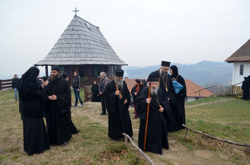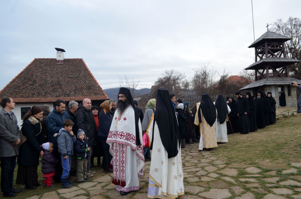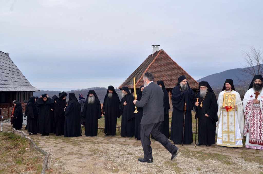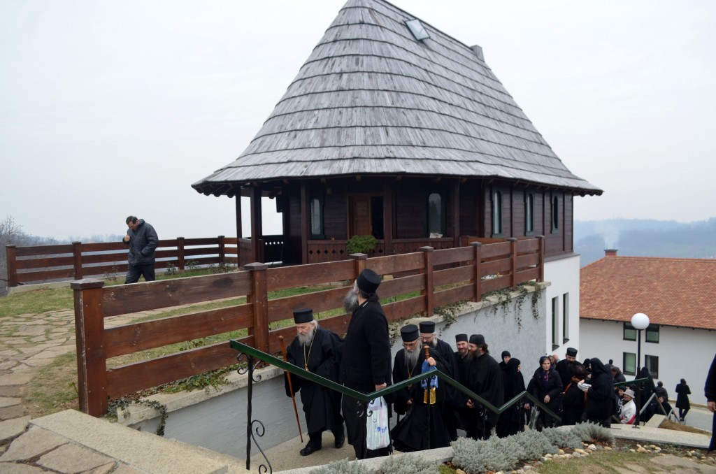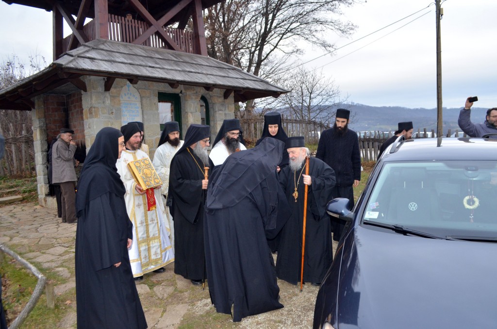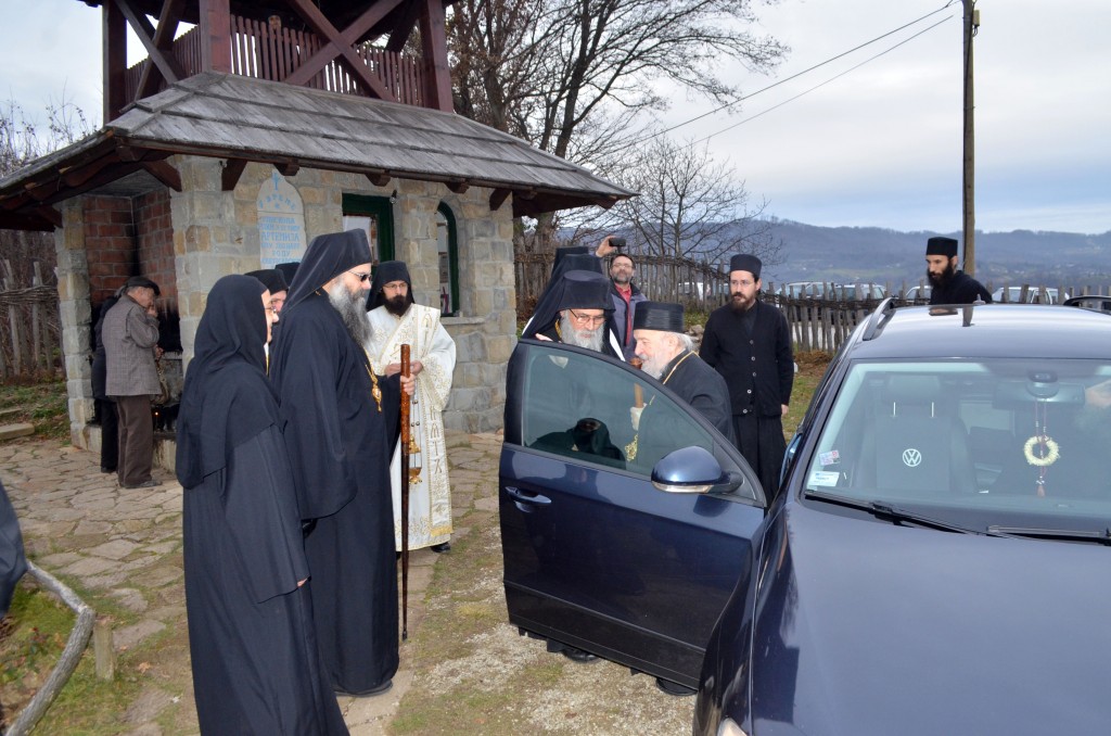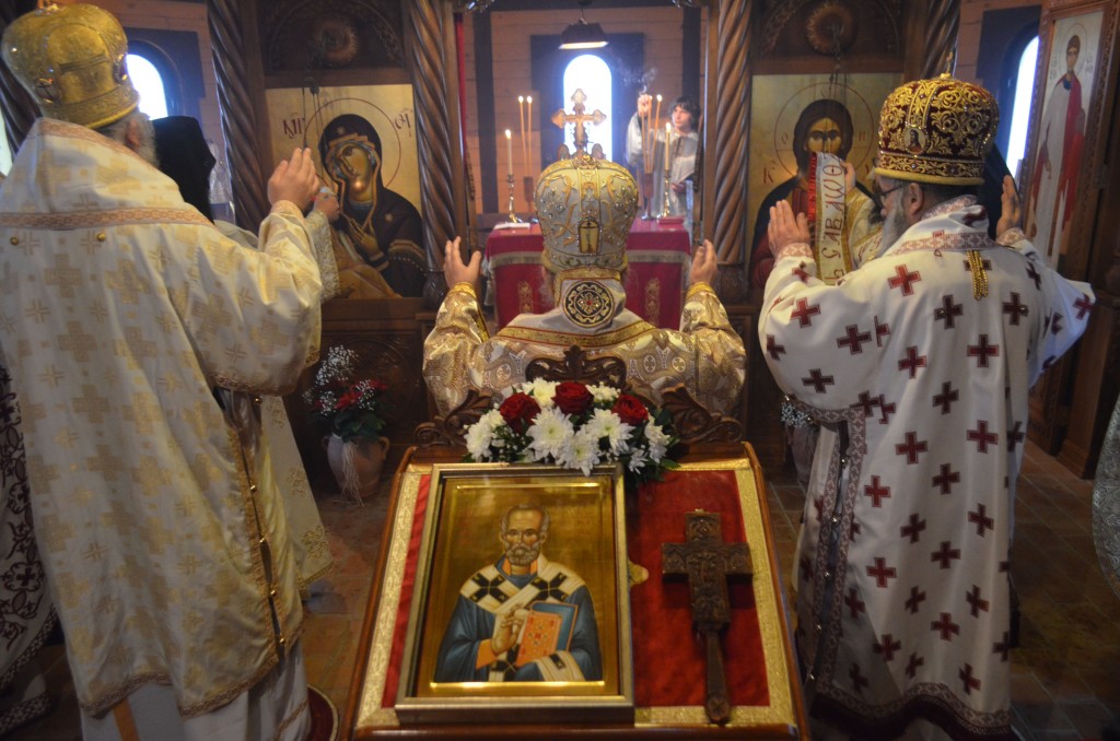 „Поред мноштва православних Срба који овај велики празник и овог великог угодника Божјег прослављају, данашњи празник, као своју крсну славу, слави и наш свети епископ и авва Артемије, а као свој имендан и наш владика Николај. Сама ова црква, овај манастир у коме одслужисмо и у коме служимо Свету Литургију посвећен је овом угоднику Божјем јер и ктитори, брат Милоје и његова породица, ктитори овог манастира, такође славе овог великог угодника Божјег. Колика је његова слава и поштовање у нашем роду, браћо и сестре, показује један податак. Широм Српске православне цркве њему је подигнуто и посвећено око шесто цркава и манастира. И овај манастир је један од њих, и овај манастир је посвећен њему, зато смо се данас и сабрали да прославимо његов свети спомен. Ја од срца честитам свима који данас славе своју Крсну славу, особито нашем епископу Артемију, а нашем епископу Николају честитам имендан. Свима желим да свети Николај као и увек буде брзи помоћник, да приноси наше молитве престолу Господњем, да нам буде неодступни заступник пред престолом Божјим а нашим епископима, који данас славе овај празник, желим да попут светог Николаја, како су и сами до сад чинили, и надаље у свом животу, у свом пастирском раду, сједињују кротост са ревношћу, напасају своју паству, приводе српске душе Христу Богу и чувају Веру Православну, молитвама овог светог угодника Божјег Николаја и свих светих. Амин, Боже дај. Нека Вам је срећна слава. На многаја љета. Исполаети деспота“.