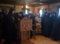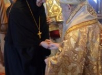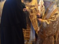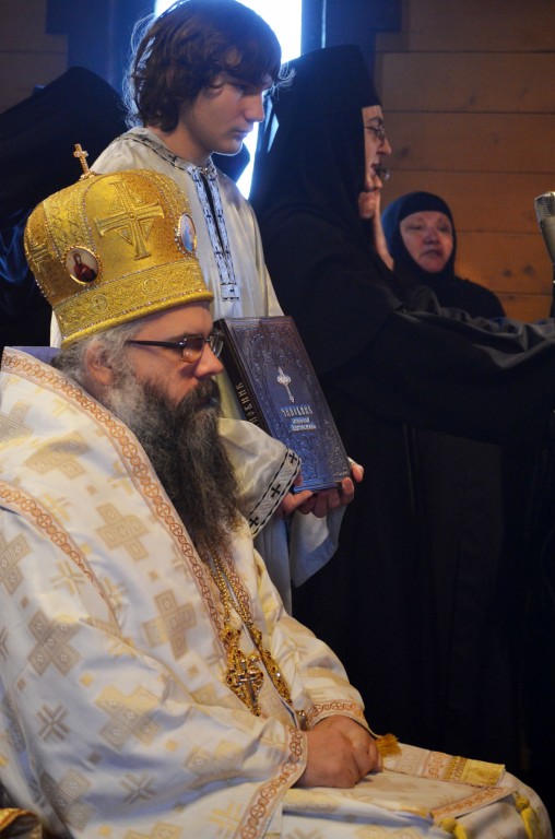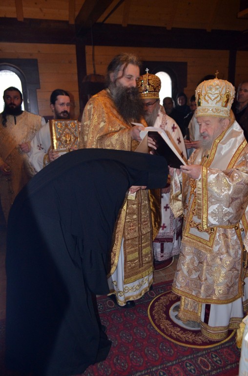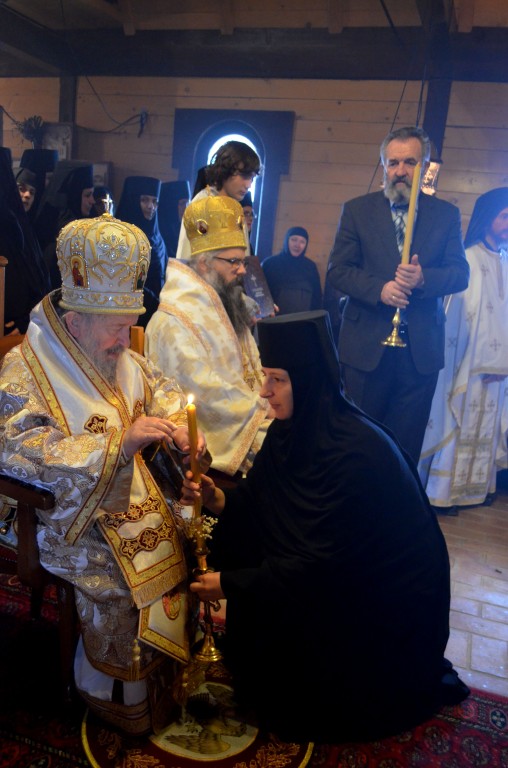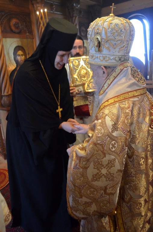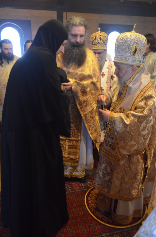 На Светој Литургији Владика Артемије је у чин игуманије произвео настојатељицу обитељи монахињу Сару, одајући јој на тај начин признање за труд на духовној и материјалној изградњи манастира и значајно учешће у јеванђелској мисији епархије у егзилу.
