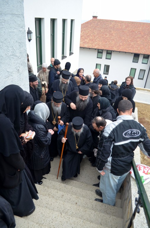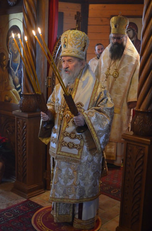 Након Свете Литургије, принесене славске колаче и кољива од стране свечара, освештао је Владика Максим. У својој веома надахнутој архипастирској беседи Владика Максим је говорио о христоликој лепоти душе Светог Николаја и његовој ревности за чистоту Православља. Своју архипастирску поуку Владика Максим је завршио речима: