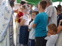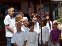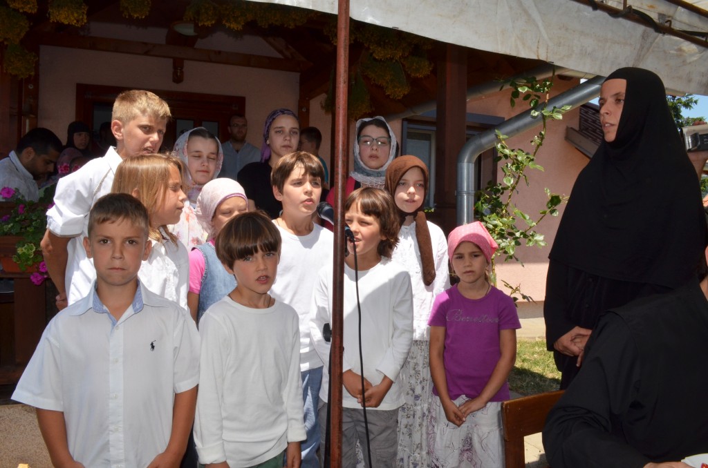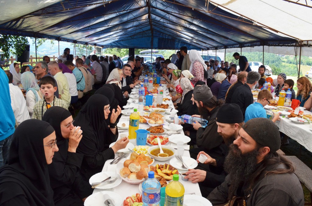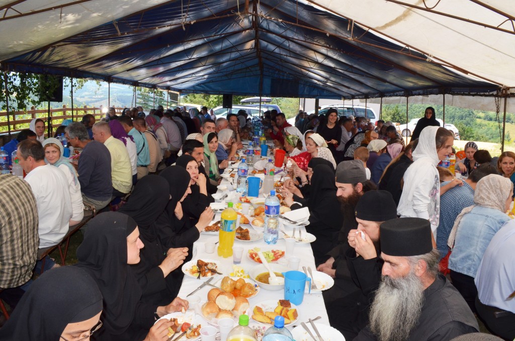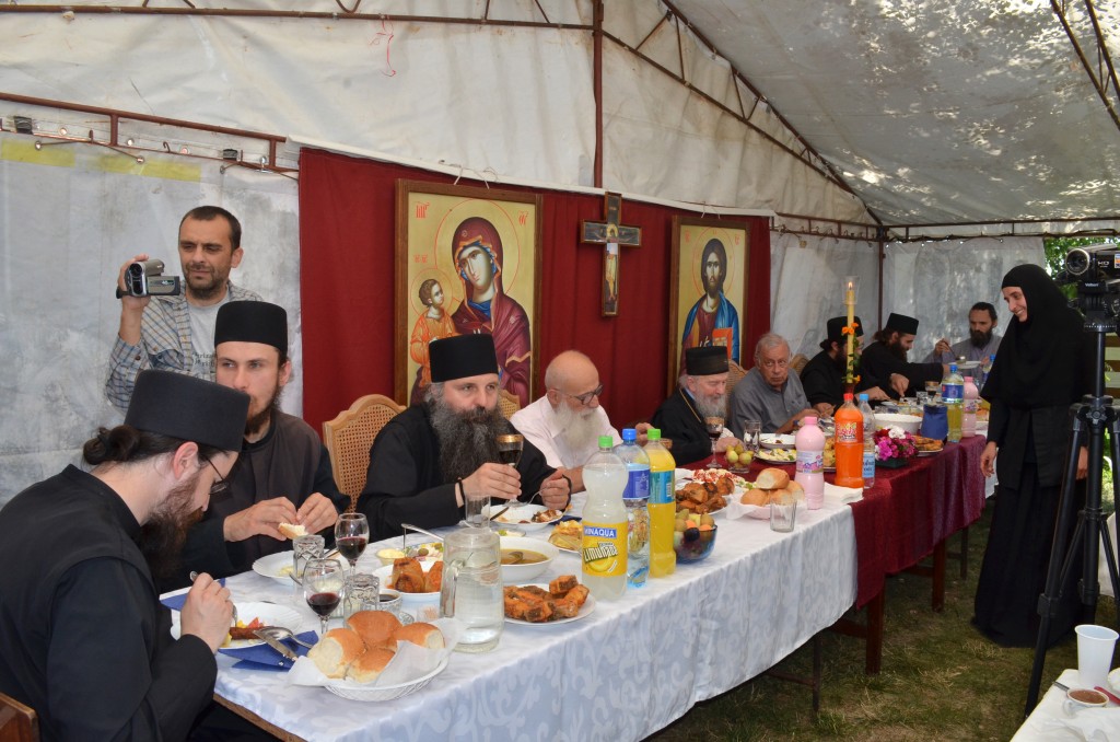 После богате духовне трпезе требало је и телу дати своју утеху. За то су се заједнички побринули сестринство манастира и овогодишњи домаћин приредивши трпезу љубави за све присутне. За време трпезе љубави светосавска дечица су одржала пригодан програм. Мали светосавци су својим песмама о Косову још једном загрејали срца присутних љубављу ка светој српској земљи. То је била и завршна нит данашњег саборавања у Преображењском манастиру – светосавском огњишту од Бога датом нашем крстоносном српском народу у ово претешко време прогона Цркве од екумениста и глобалиста, на утеху, укрепљење и спасење.