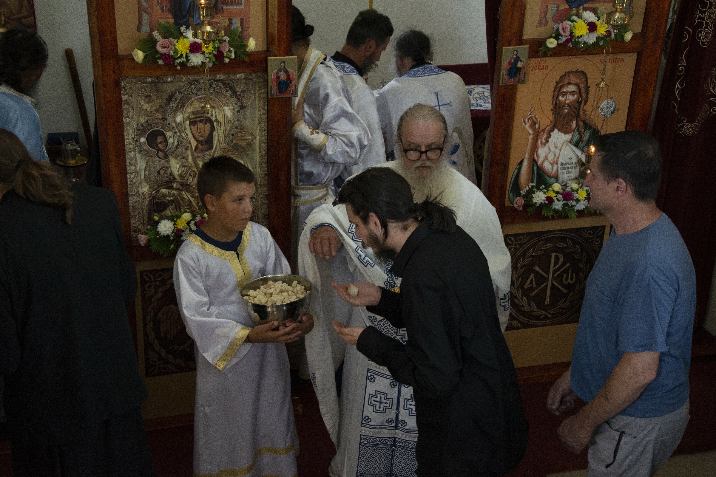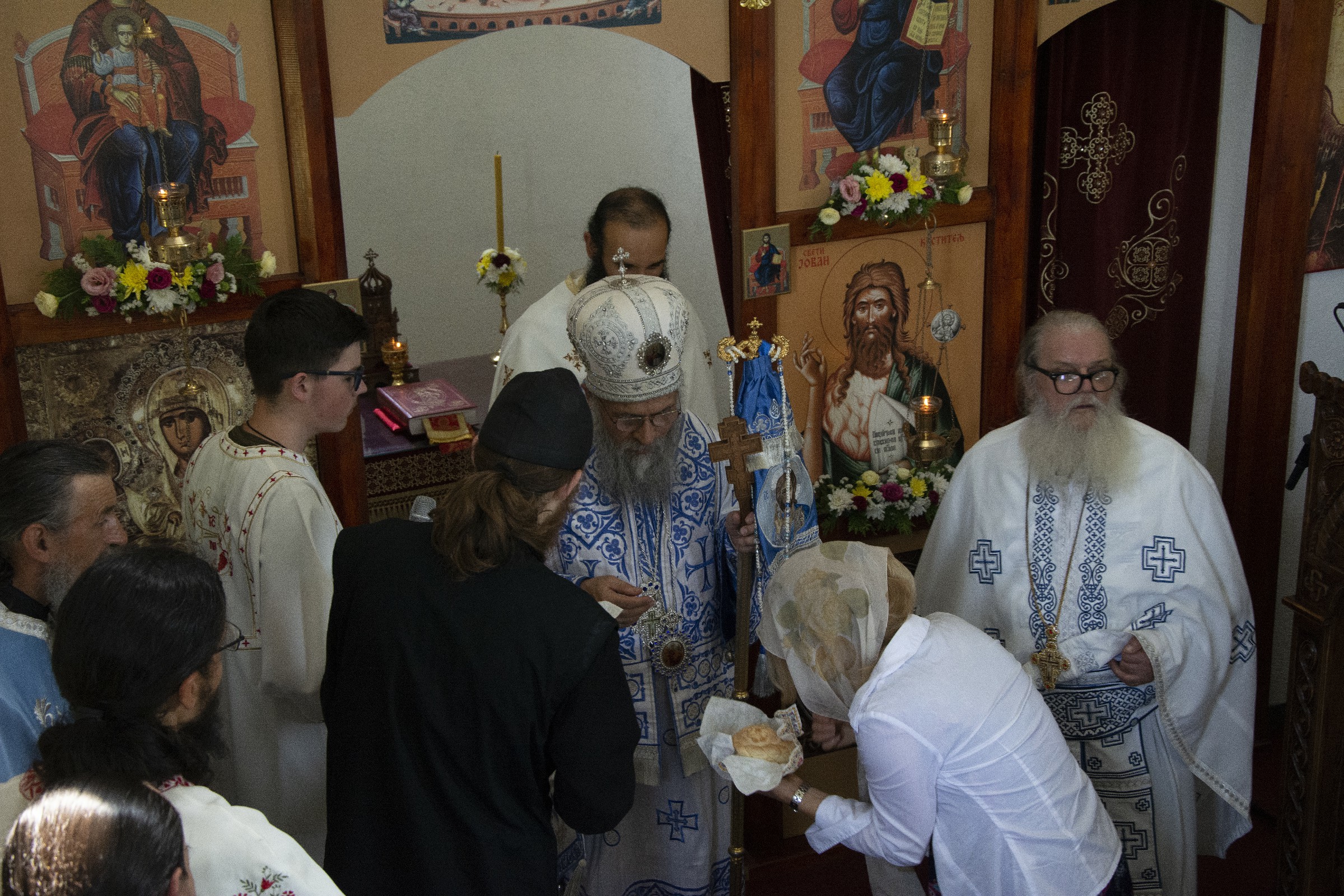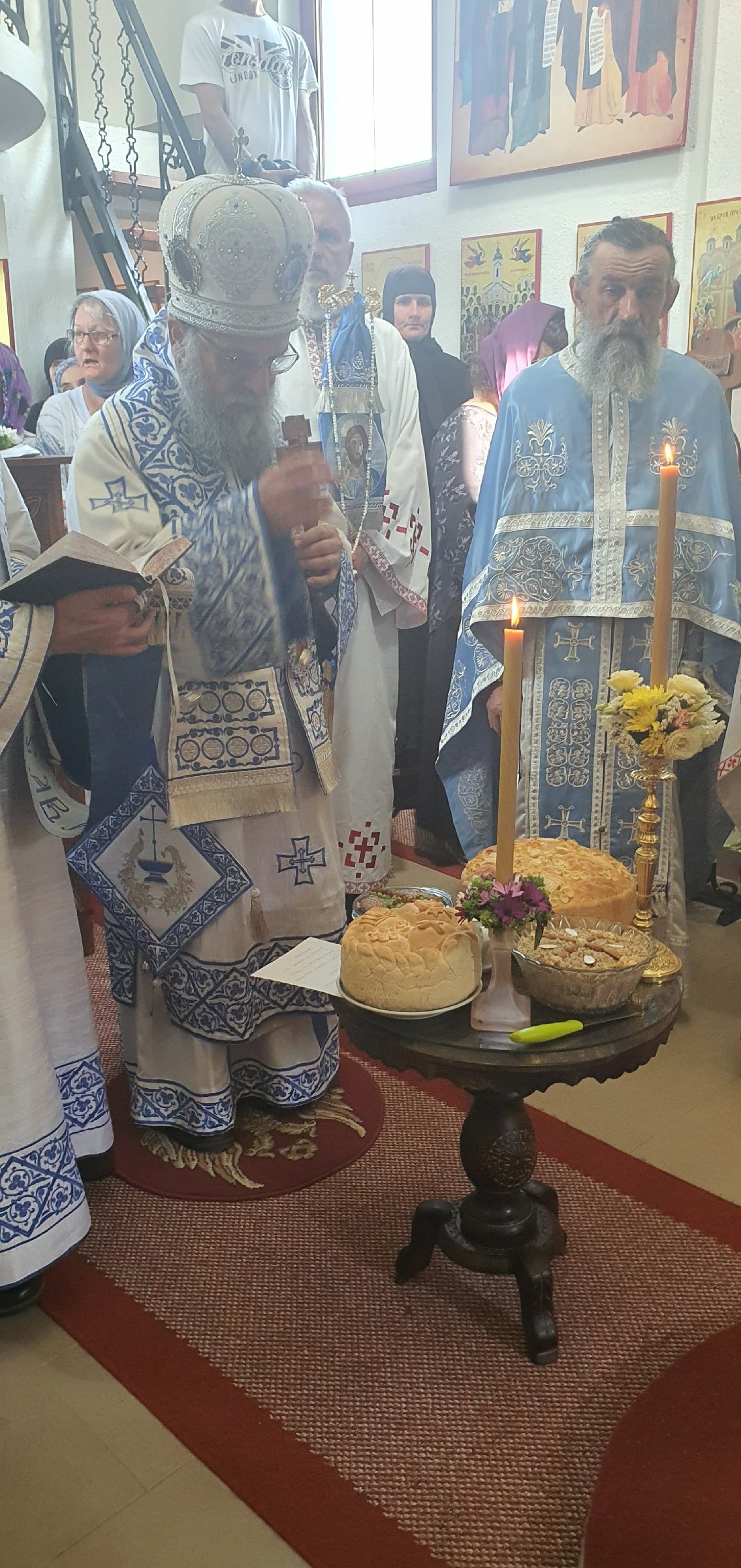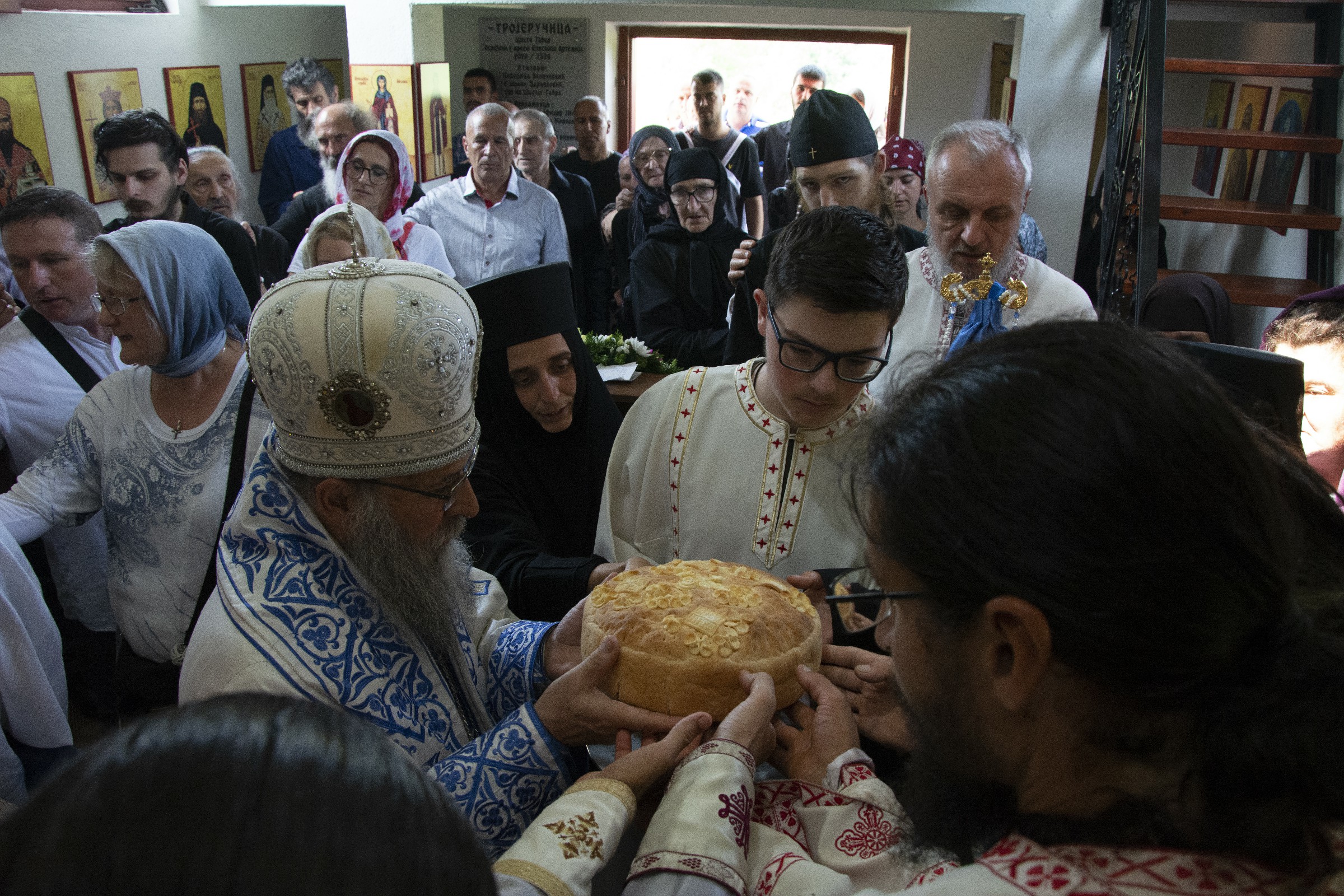 Након Литургије Владика Николај је извршио чин резања славског колача и благосиљања жита које су у част Иконе Пресвете Богородице Тројеручице принели сестринство манастира и овогодишњи домаћини славе Владимир Виденовић из Књажевца и Снежана Видовић из Ниша. За наредну годину пријавили су се Весна Николов из Ниша и Јелена Миловић из Прокупља.