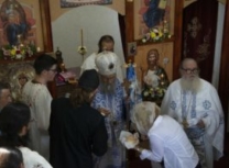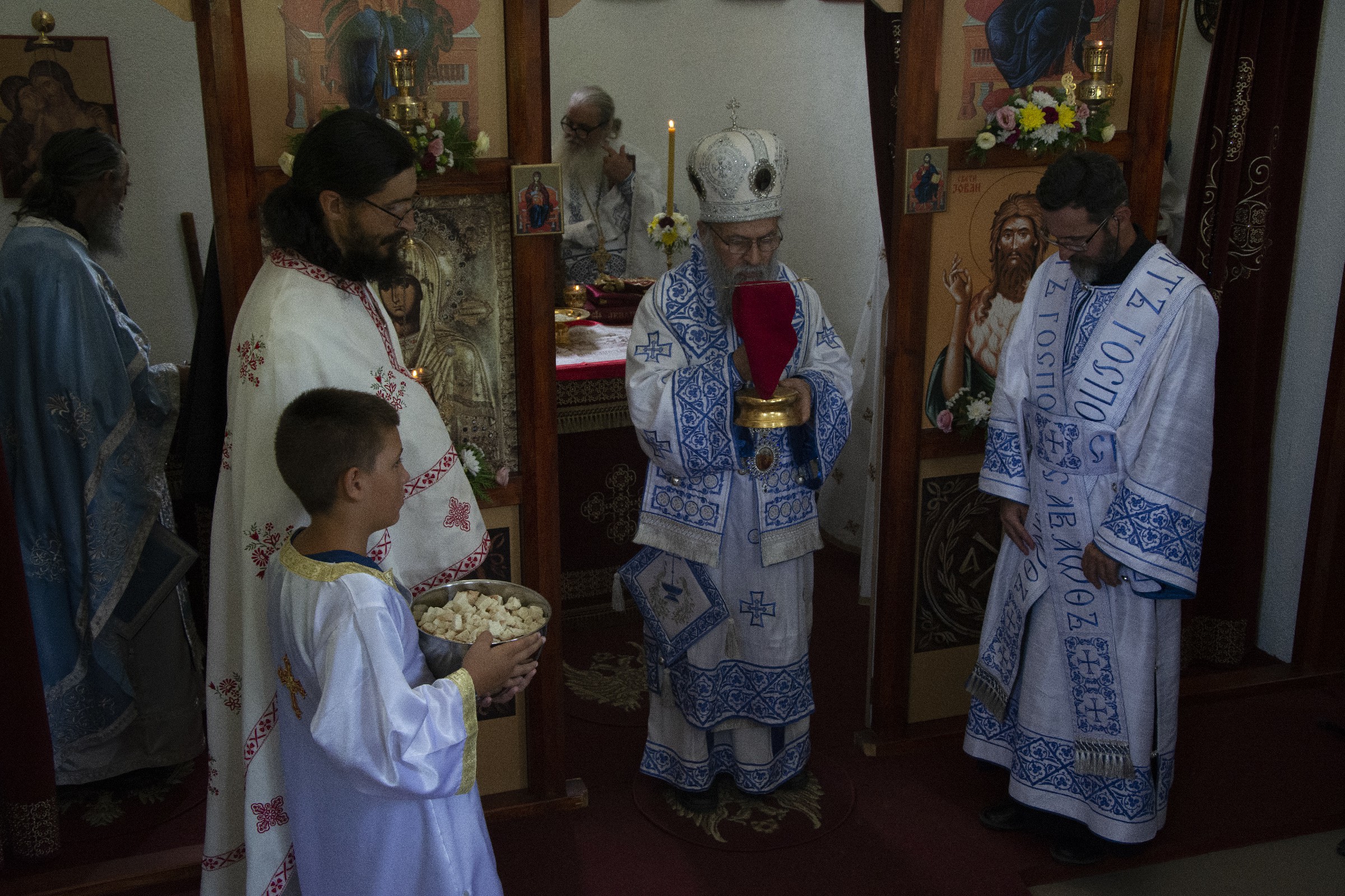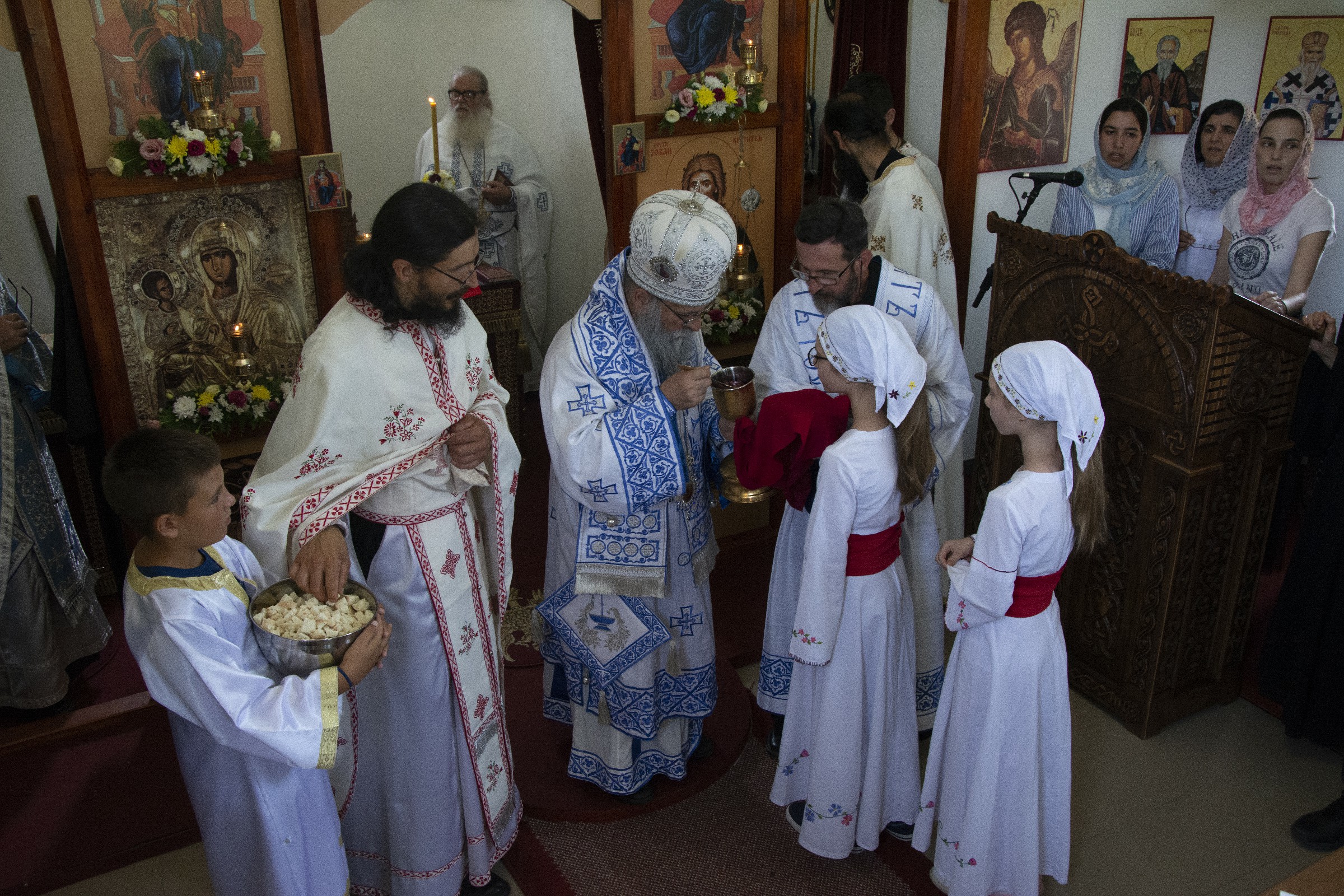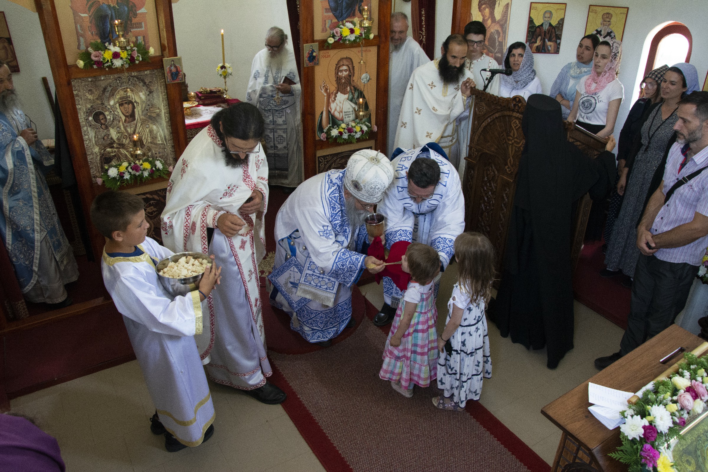 Након Литургије Владика Николај је извршио чин резања славског колача и благосиљања жита које су у част Иконе Пресвете Богородице Тројеручице принели сестринство манастира и овогодишњи домаћини славе Владимир Виденовић из Књажевца и Снежана Видовић из Ниша. За наредну годину пријавили су се Весна Николов из Ниша и Јелена Миловић из Прокупља.