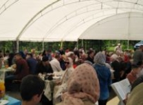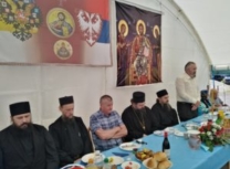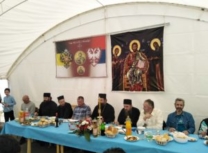 Током трпезе љубави сестре које у манастиру певају за певницом на празничним литургијама отпевале су неколико духовних и родољубивих песама. Такође је и дечак Јован Андрић из Беча на фрули одсвирао неколико нумера. Настојатељ манастира, протосинђел Димитрије (Ђоковић), тада се кратко обратио народу честитавши свима празник и захваливши се Преосвећеном Епископу и гостима на посети и служењу литургије и позвавши присутног брата Милоја Стевановића из Чачка, ктитора катакомбног манастира Светог Николаја Мирликијског у Лозници код Чачка, да се и он обрати народу, што је овај и учинио подсетивши у свом обраћању на подвиг блаженопочившег владике Артемија и на то да је мисија епархије рашко-призренске у егзилу само дело Божије и савремено чудо Божије у српском народу.