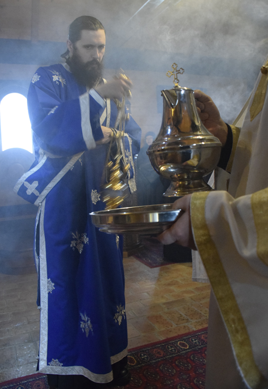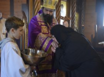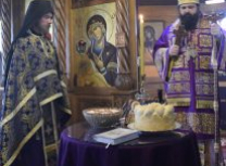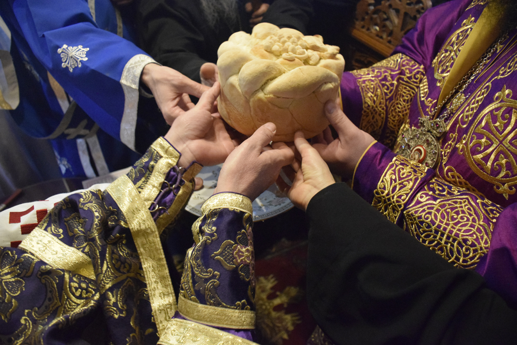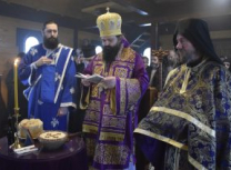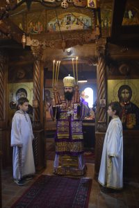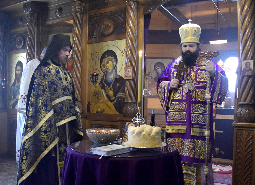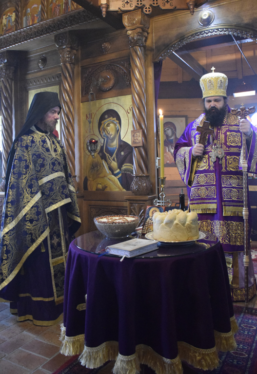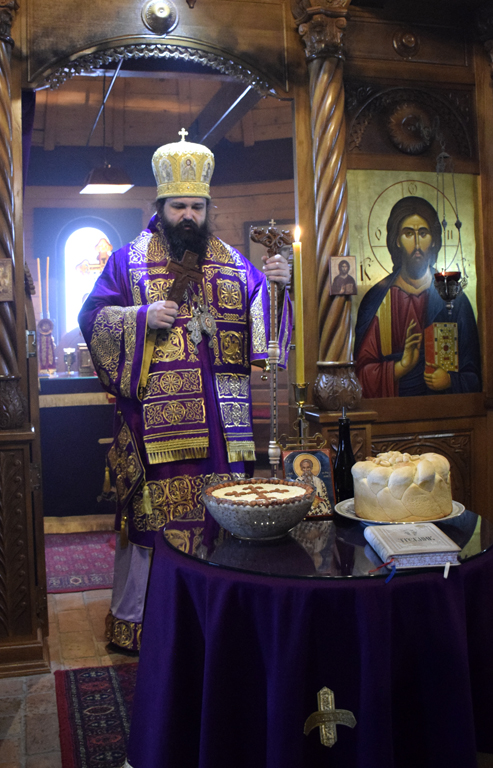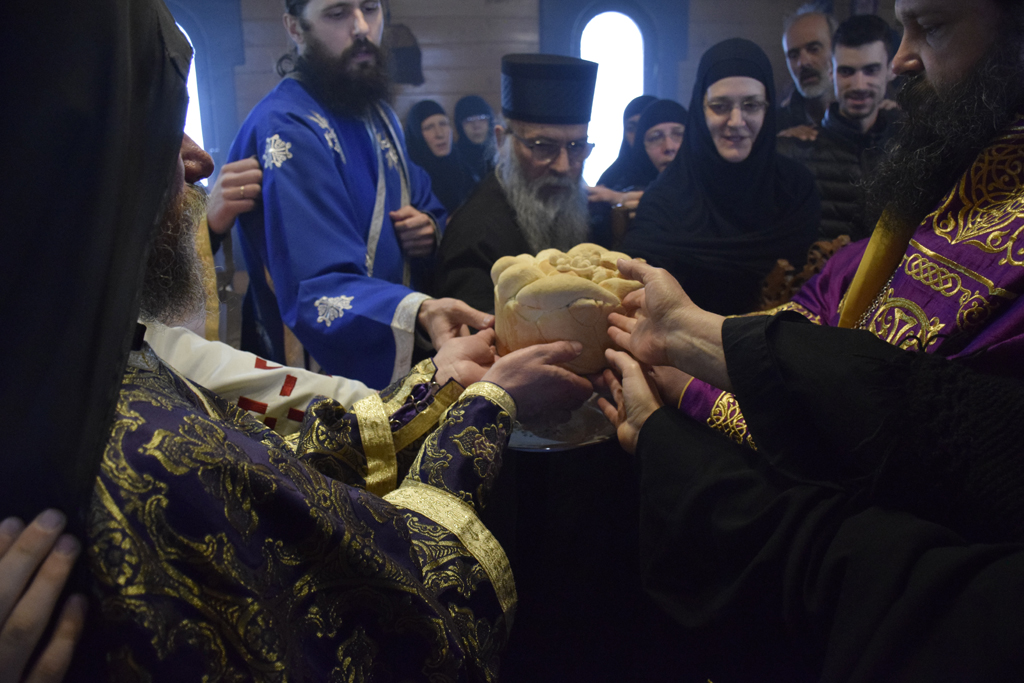 После Литургије Преосвећени Владика Ксенофонт извршио је чин резања славског колача и благосиљања жита које је принео протосинђел Софроније у част свог небеског заштитника Светог Софронија патријарха Јерусалимског.