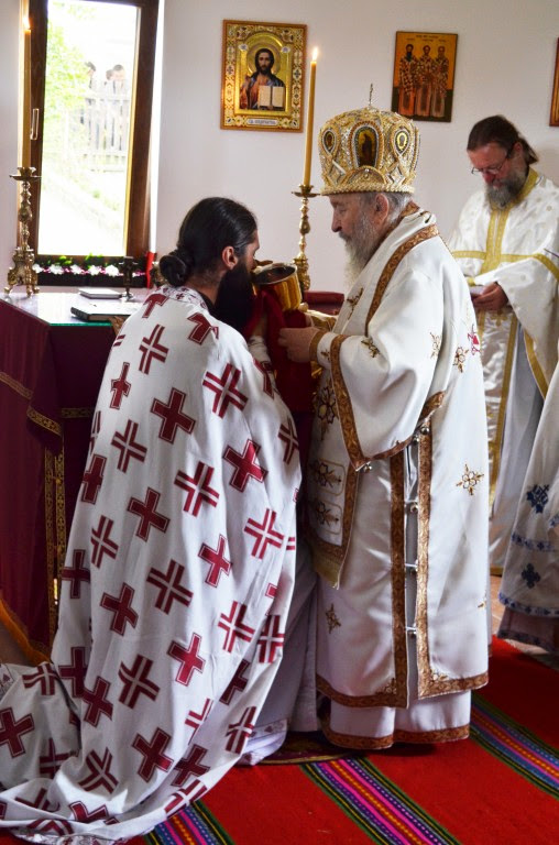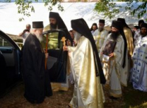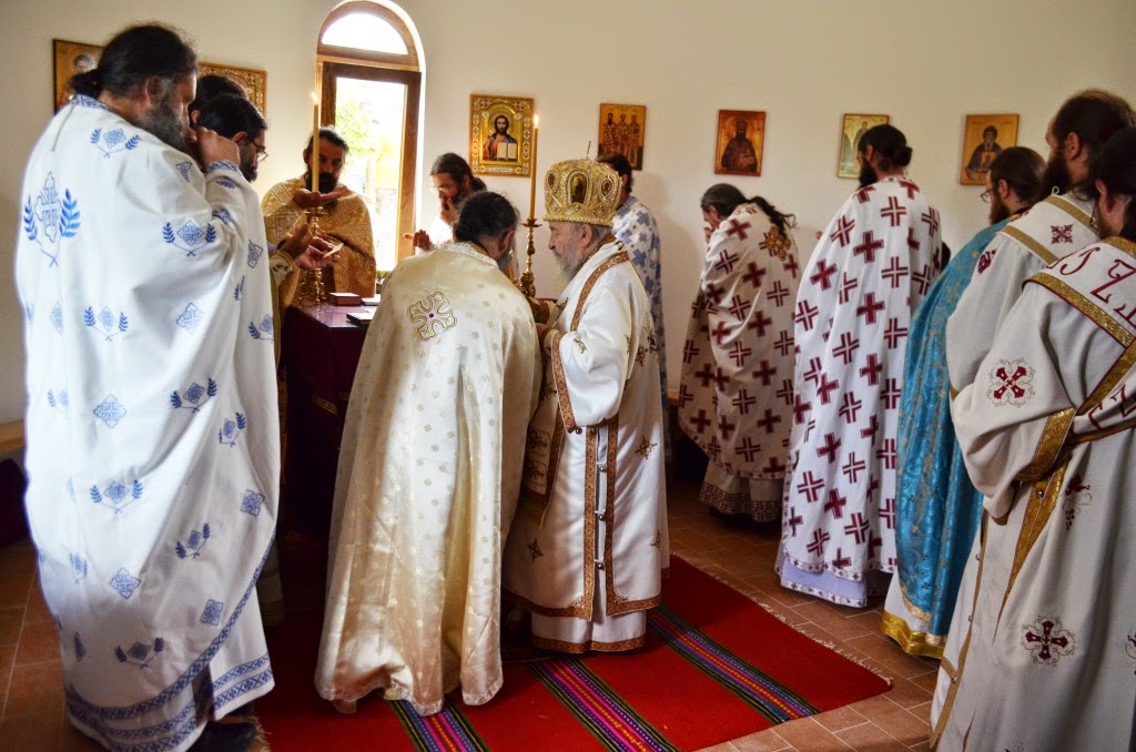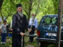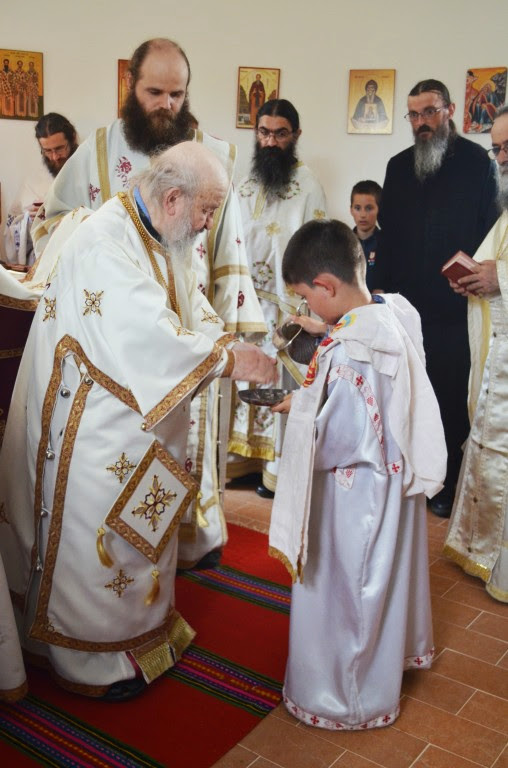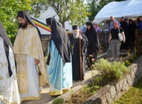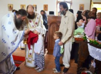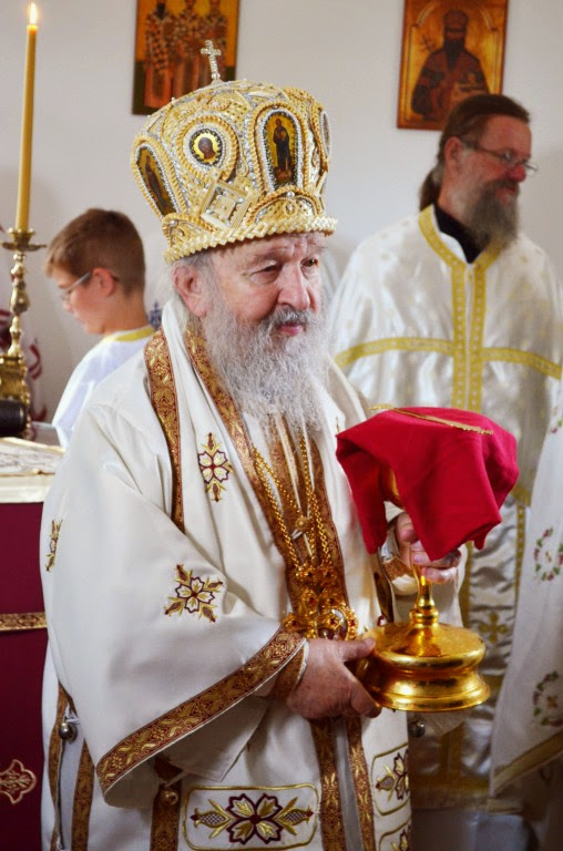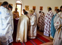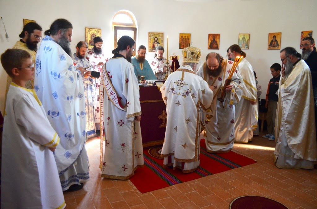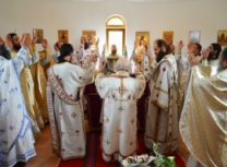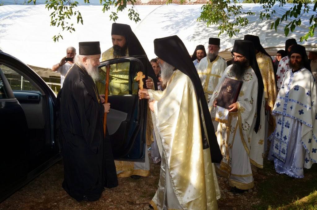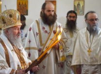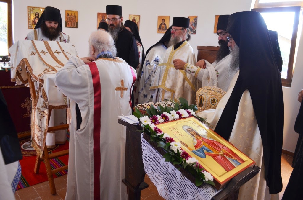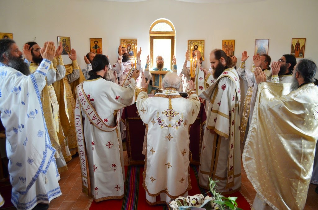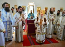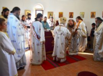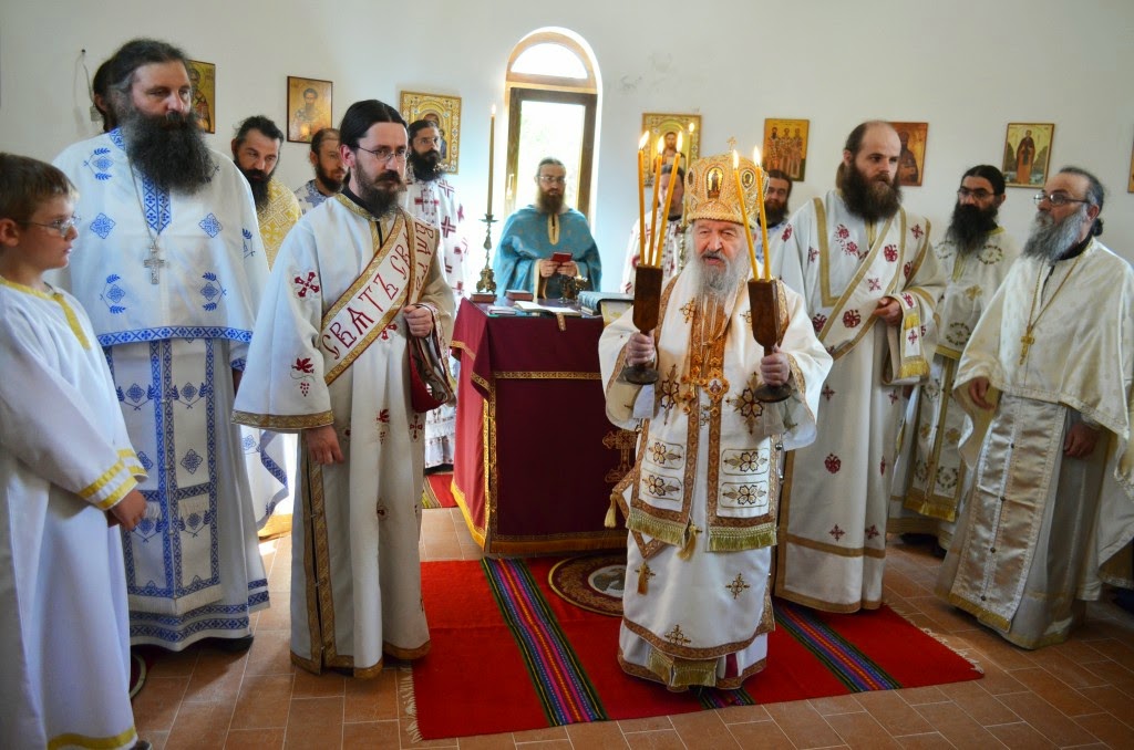 Свету Архијерејску Литургију служио је Његово Преосвештенство Епископ рашко-призренски у Егзилу Г.Г Артемије, уз саслуживање свештеномонаха и свештенођакона.