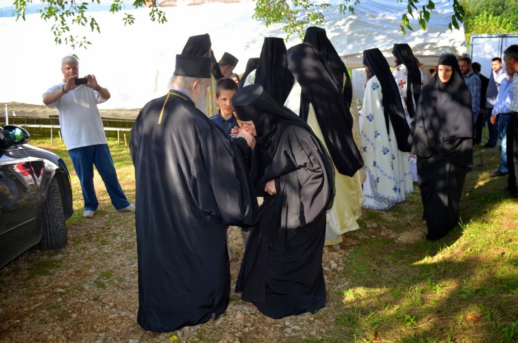 Ево браћо и сестре по трећи пут састајемо се на овоме светоме месту да прославимо дивну угодницу Божију свету великомученицу Марину којој је овај храм овде посвећен, и овај манастир. Прве године славили смо у једној просторији у конаку јер овде није било ништа. Друге године био је овај храм али недовршен па смо у њему прославили храмовну славу и свету мученицу Марину. Е ове године, Богу хвала, отишло се много даље па се налазимо у једном предивном амбијенту завршеном, скоро завршеном, у овоме Божијем храму захваљујући мати Антуси и њеним сестрама које се труде да ову богомољу приведу до краја и да је предаду Богу на службу.