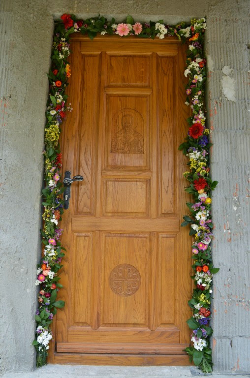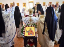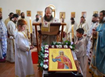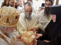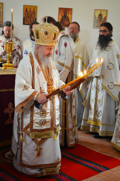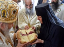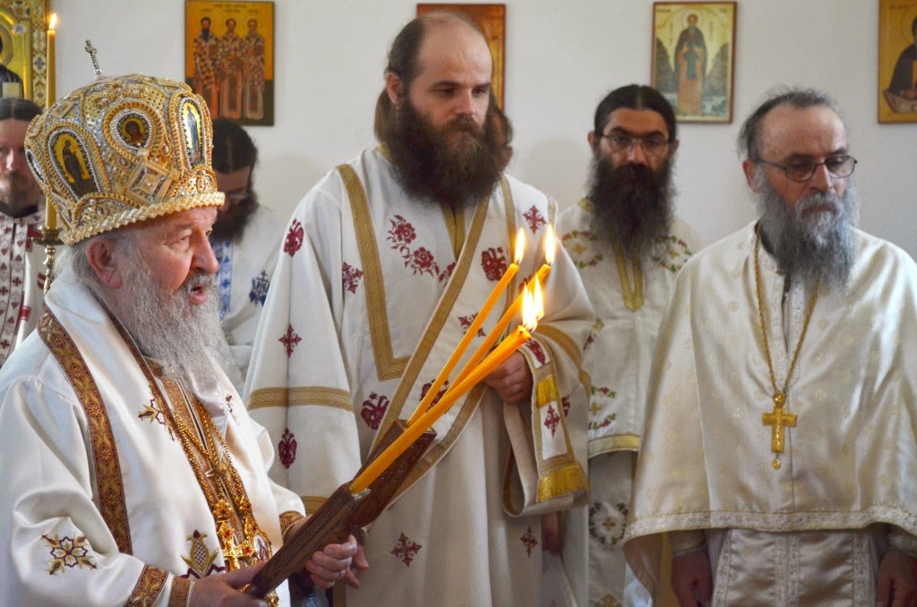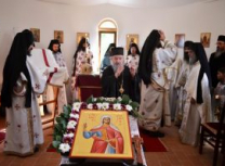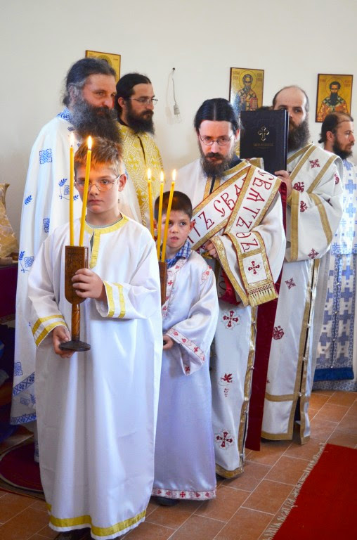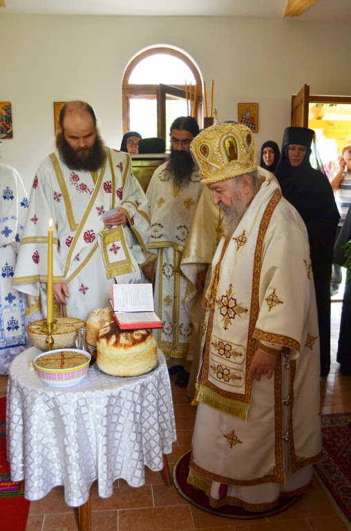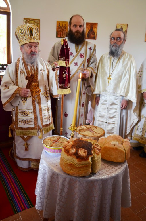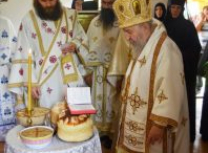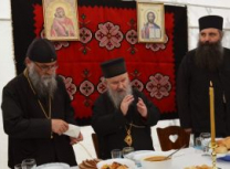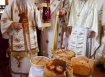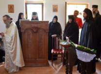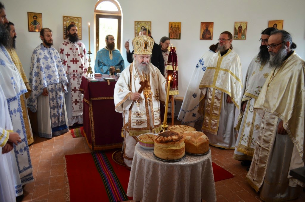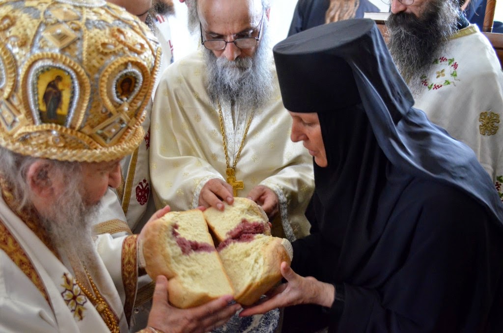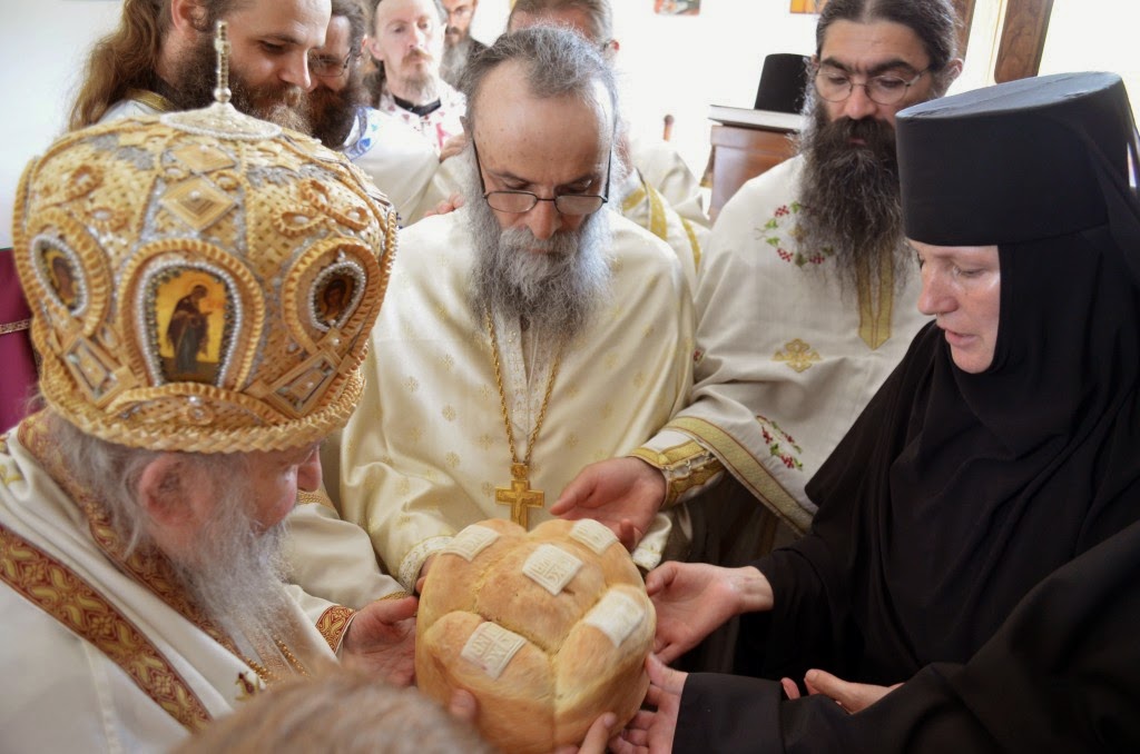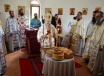 Владика је извршио чин сечења славског колача и благосиљања кољива, које је спремила мати Антуса, настојатељица Катакомбе.