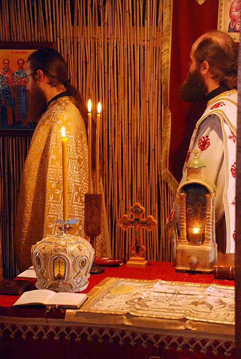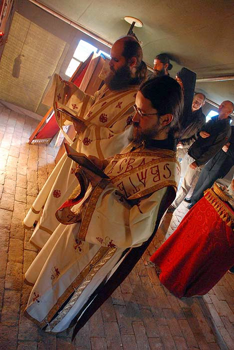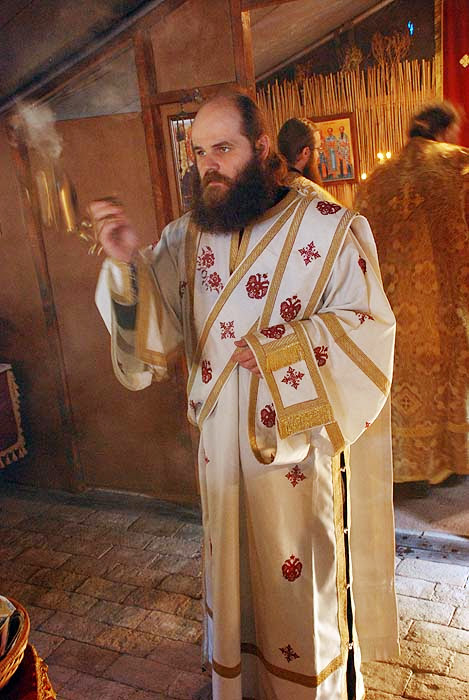 Епископу су саслуживали свештеномонаси и свештенођакони Епархије.