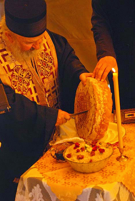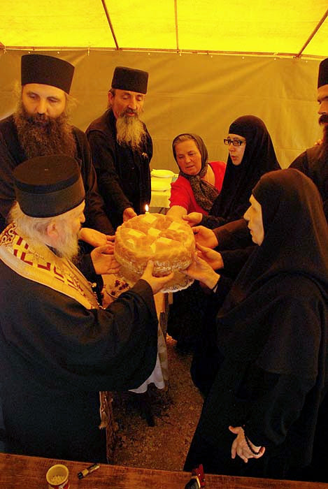 Епископ Артемије је извршио чин сечења славског колача, и благосиљања кољива, које је припремила монахиња Параскева у част Свете Петке њене заштитнице, а чије име монахиња Параскева носи.