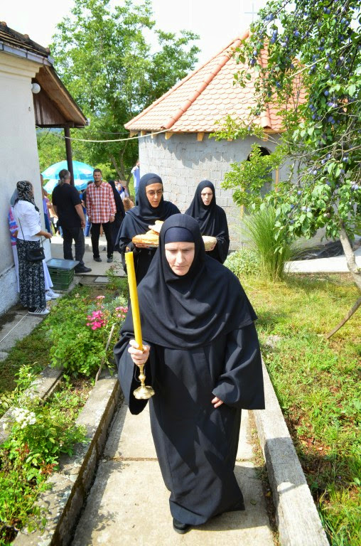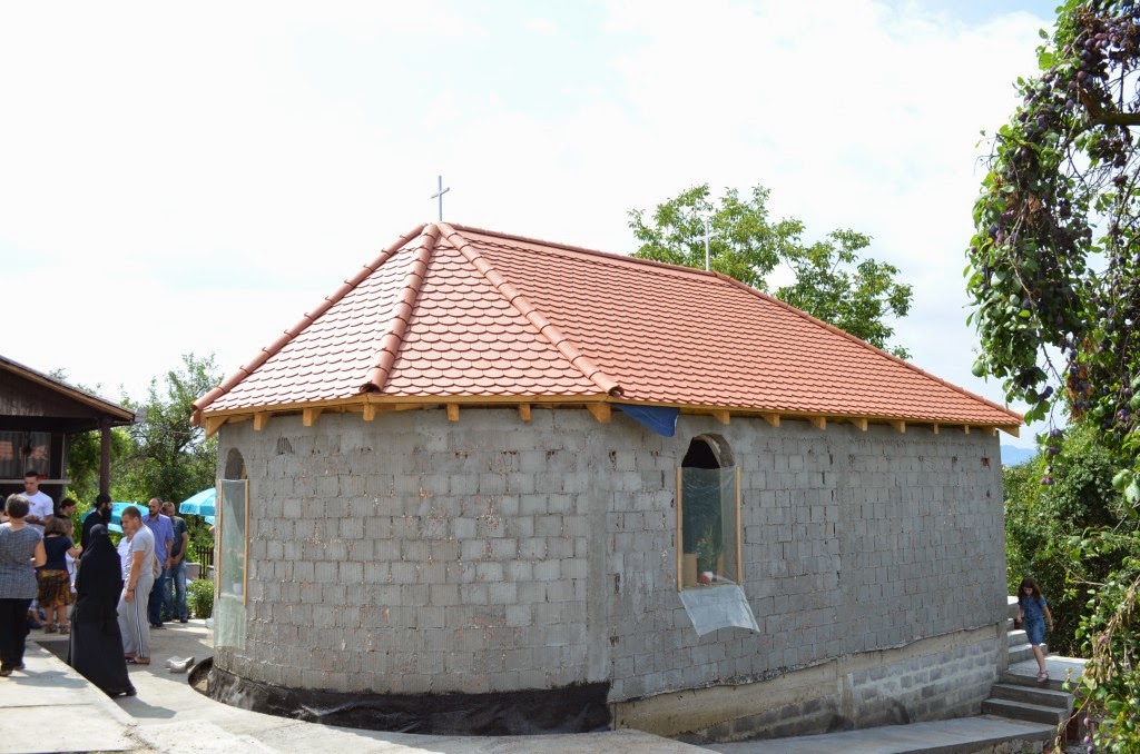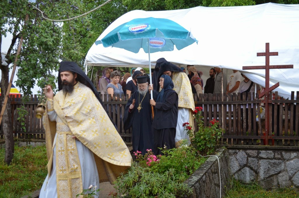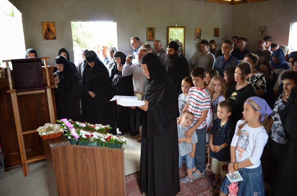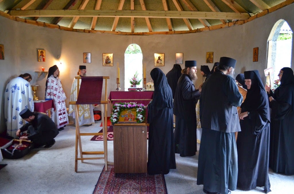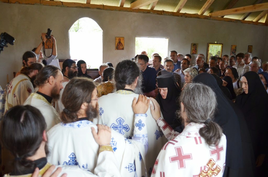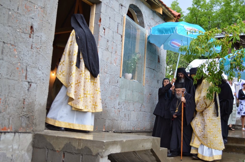 У својој празничној беседи Епископ Артемије је нагласио да је мати Антуса са монахињом Олимпијадом дошла овде пре две године, захваљујући Драгану и Ангелини Христивојевић: „Благодат Светога Духа данас нас је сабрала браћо и сестре са разних страна у ову нову нашу богомољу да прославимо Господа нашега Исуса Христа са Оцем и Духом Светим и да почнемо богослужење и у овој нашој најмлађој катакомби. Ово је дакле још једно огњиште вере православне, вере светосавске које је Господ благословио да се овде подигне, да се оформи на челу са мати Антусом и њеним сестрама које су овде дошле пре две и по године, милошћу Божјом и добротом оних који су нам даровали ово место овде, Драган и Ангелина Христивојевићи.“