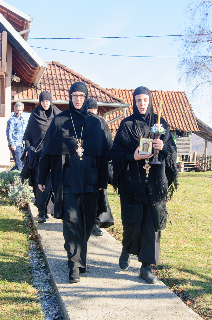 На дан празновања Свете великомученице Варваре, 17. децембра, његово Преосвештенство Епископ рашко-призренски у егзилу Г.Г. Ксенофонт служио је свету Архијерејску Литургију у манастиру Светог Преображења Господњег у Леушићима. Владики су саслуживали архимандрит Варнава (Димитријевић), протосинђел Софронија (Ердељан), јеромонах Георгије (Марковић) и јерођакон Георгије (Радојичић). По завршетку Свете Литургије Владика Ксенофонт је обавио чин резања славског колача и благосиљања кољива које је у част своје небеске заштитнице Свете великомученице Варваре принела игуманија Варвара. Владика Ксенофонт је у својој архипастирској беседи поучио присутне вернике: „Дакле, да завапимо са Псалмопојцем: ‘Чиме ћу узвратрити Господу за све што ми је дао’. У исто вријеме нам Свето писмо и одговара: ‘Сине, дај ми своје срце’, то тражи Господ од нас. Не тражи Господ од нас никаквих богатстава, не тражи Господ од нас новца, не тражи Господ ни прилоге манастирима ни црквама и украшавање икона сребром и златом и драгим камењем или било какве друге прилоге. Није то суштина хришћанскога живота и не очекује то Господ од нас, не гледа на наш статус у друштву, не гледа на наше имање, Господ гледа на наше срце, гледа шта у томе срцу има, гледа колико је то срце благодарно. И зато ова деветорица и ако се очистише отидоше проклети од Господа, не испунише се на њима ријечи Господње: ‘Вјера твоја спасла те је иди у миру’, него само на овоме јадноме самарјанину кога Господ није гледао ни које је нације, на крају крајева ни које је вјере него му је учинио љубав, учинио је чудо јер је видио благодарнога човјека који пред Њим клечи, који од Њега очекује милост.