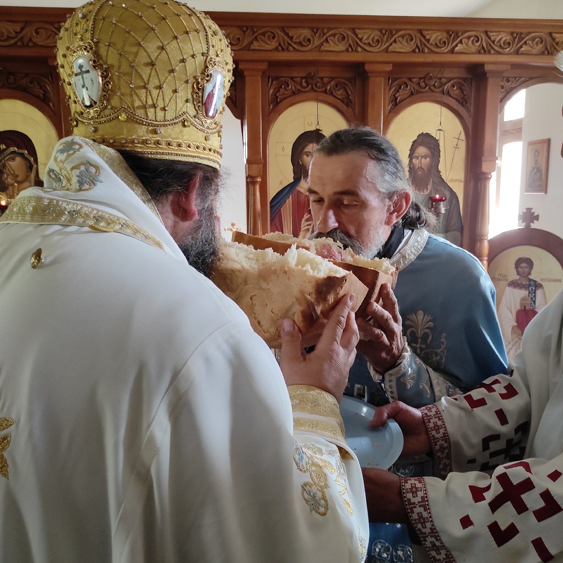 По завршетку Свете Литургије Владика Ксенофонт је обавио чин резања славског колача и благосиљања кољива које је у част свог небеског заштитника Светог апостола Јакова принео протосинђел Јаков.