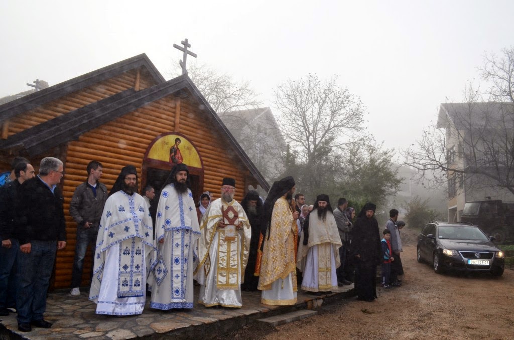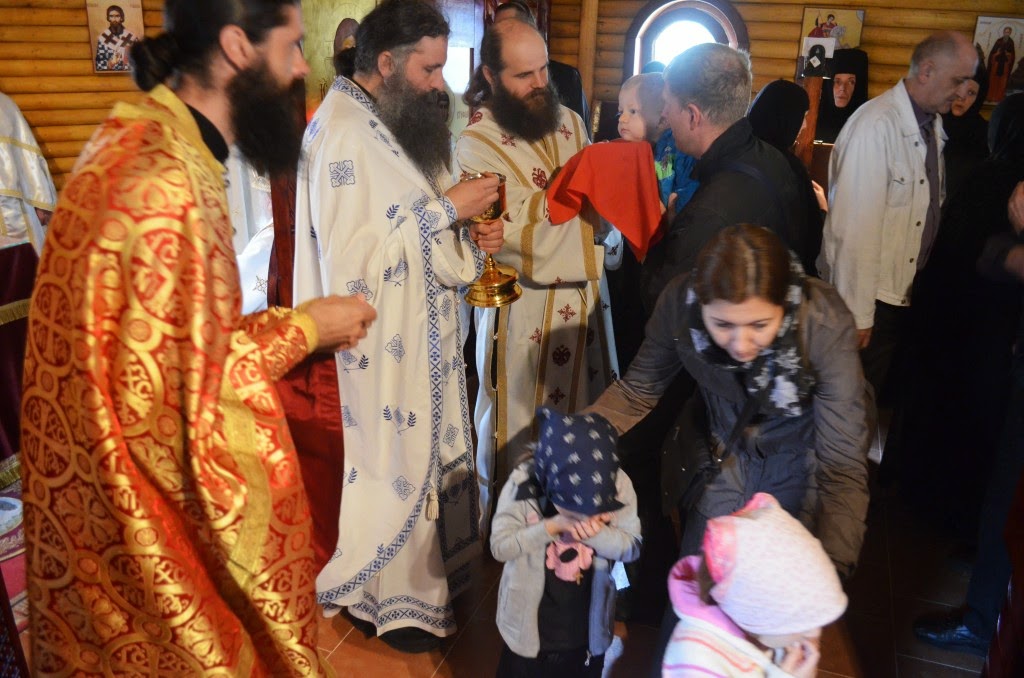 Владика Артемије је извршио чин резања славског колача и благосиљања кољива, које су поред јеромонаха Романа, настојатеља Катакомбе, спремили и домаћини овогодишње славе: Видосава Живковић, Евгениja Нонковић, Слободанка Баловић, Добрила Jeмуовић и Милева Гиговски из Београда.