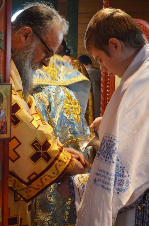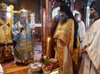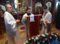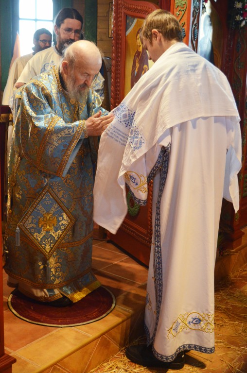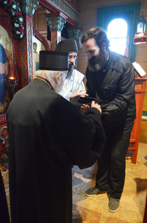 Пре почетка Литургије Владика Артемије је благословио облачење подрасника искушенику овог манастира Мирославу Клицину.