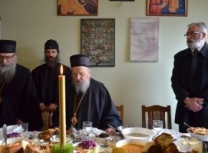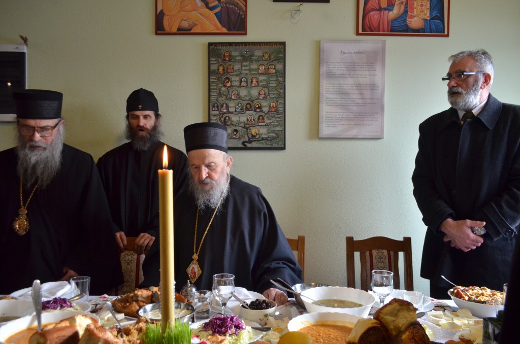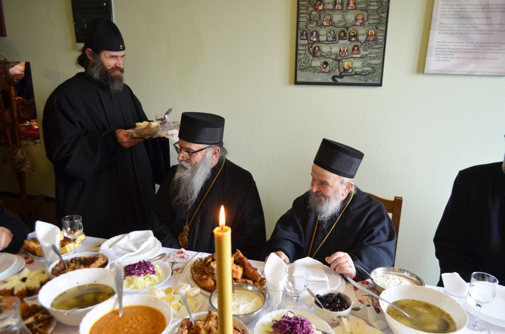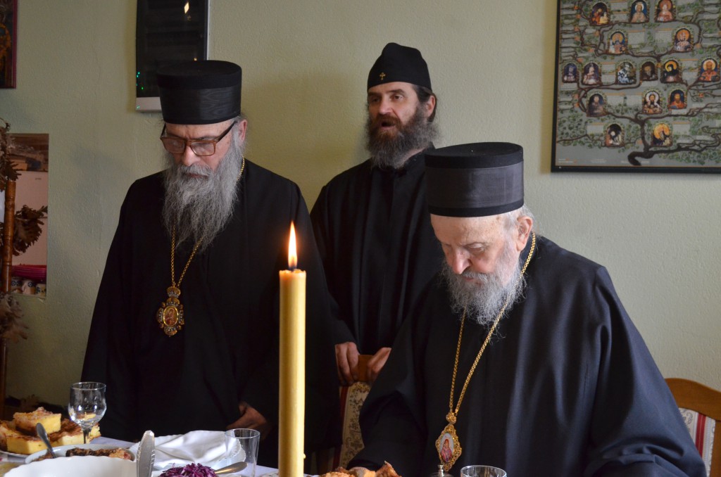 Након Литургије Владика Артемије је извршио чин резања славског колача и благосиљања жита које је у част светог архиђакона Стефана принело братство манастира.