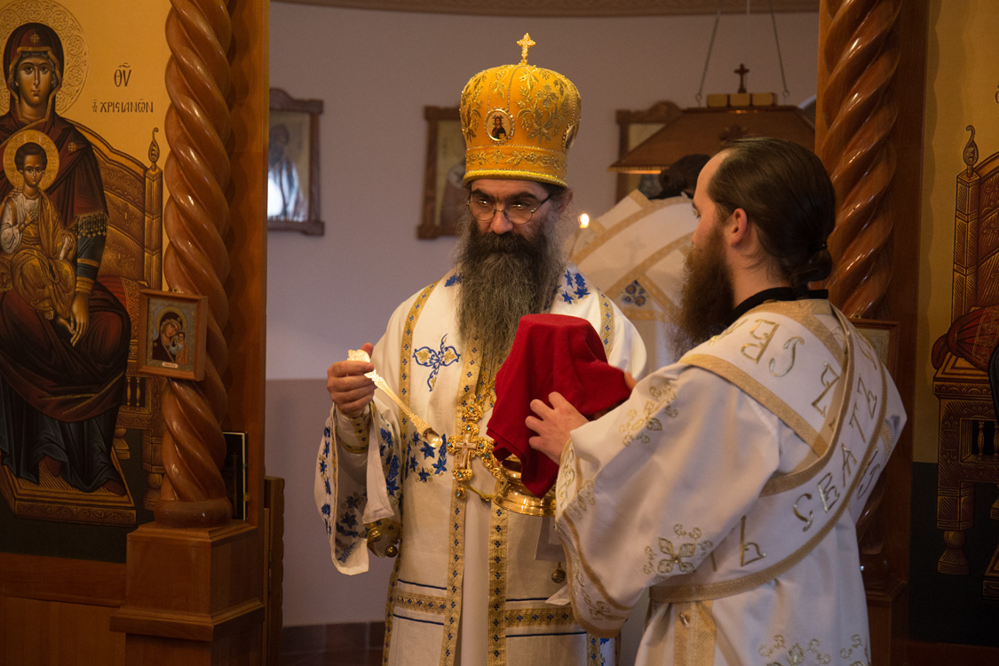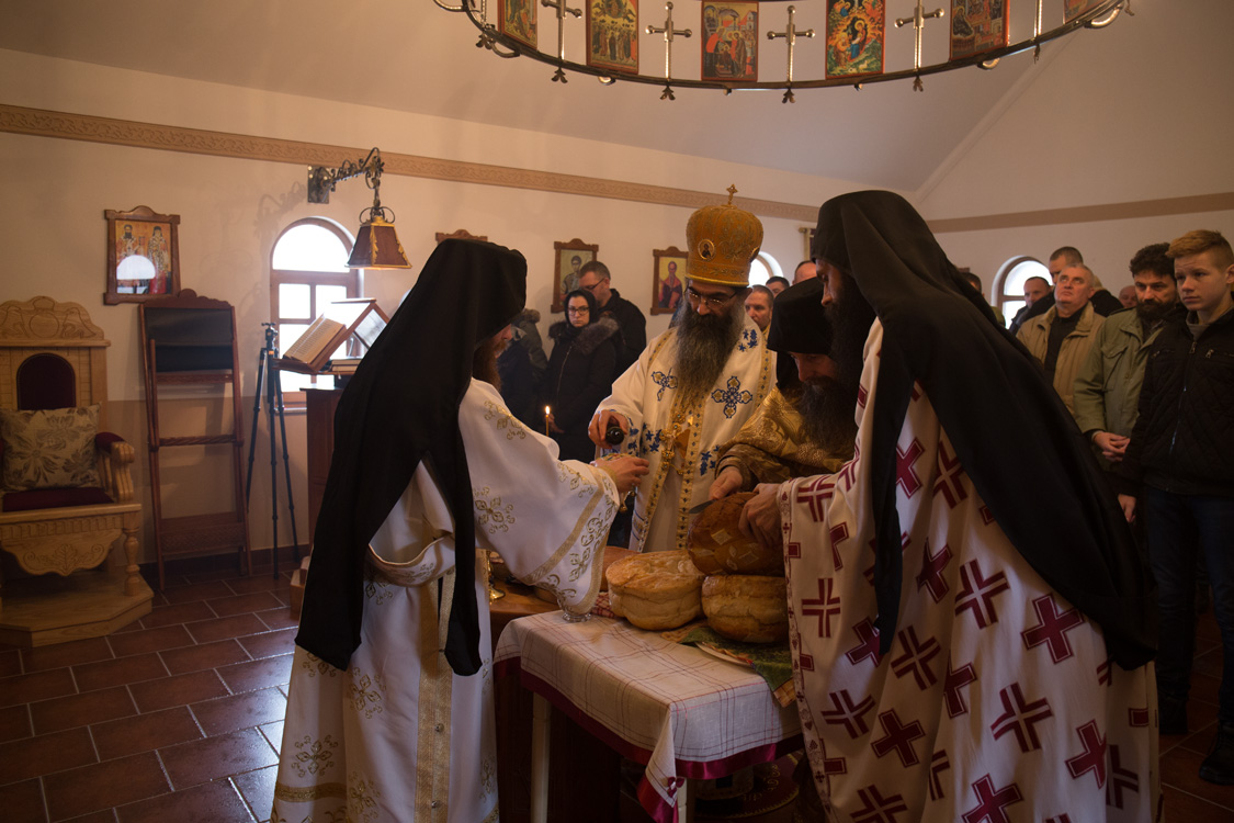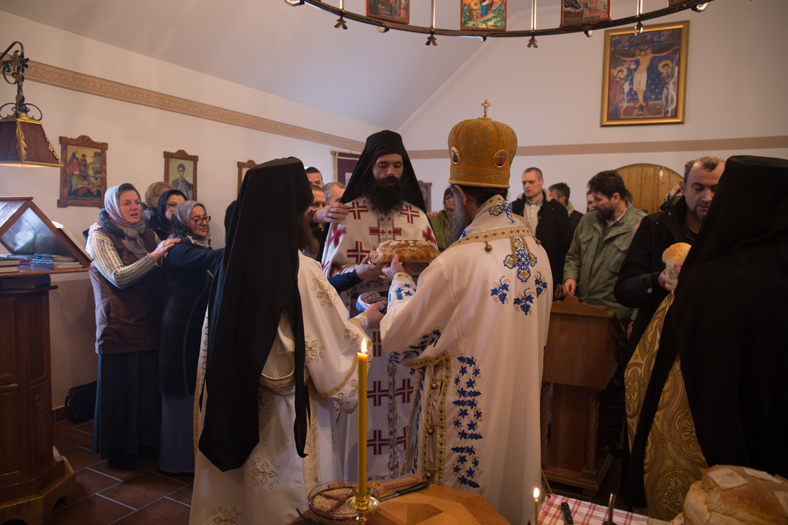 Након Свете Литургије Владика Наум је извршио чин резања славског колача и благосиљања жита, које је у част Светог архиђакона Стефана, принео настојатељ манастира јеромонах Симеон.