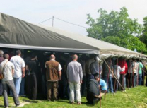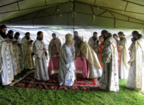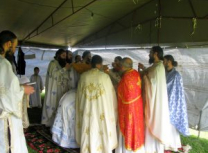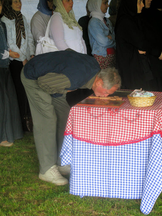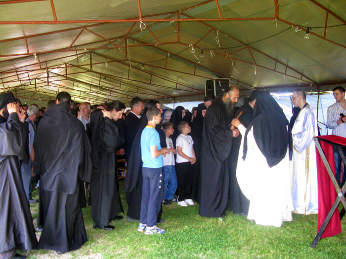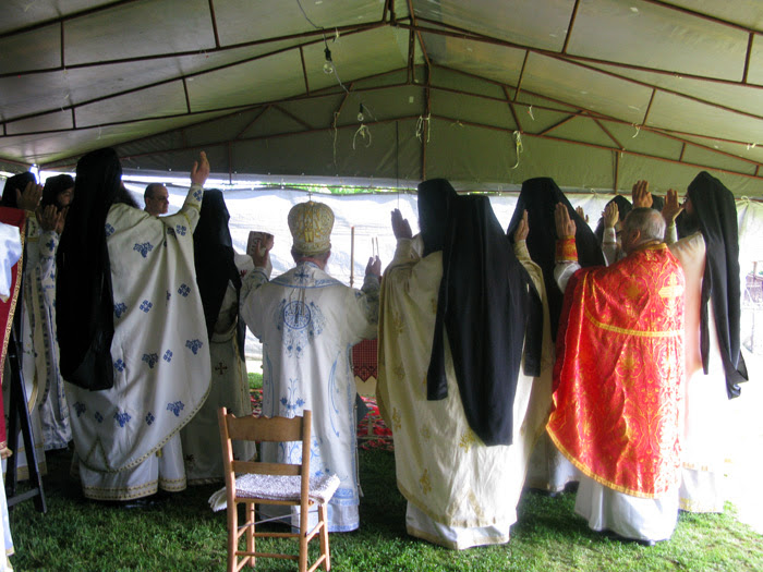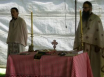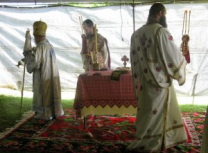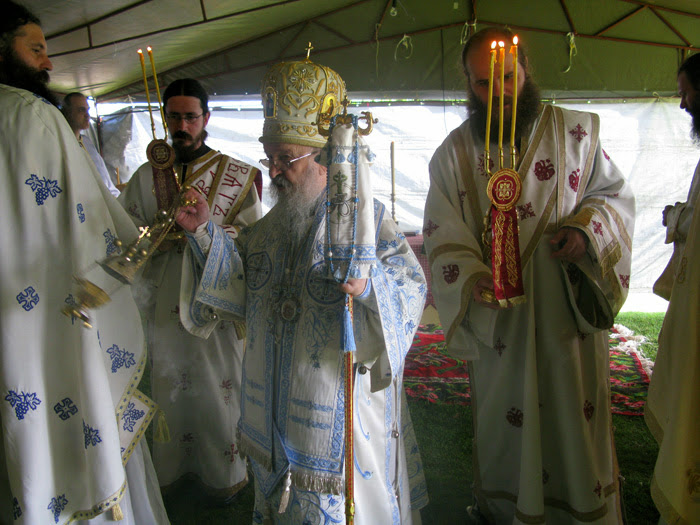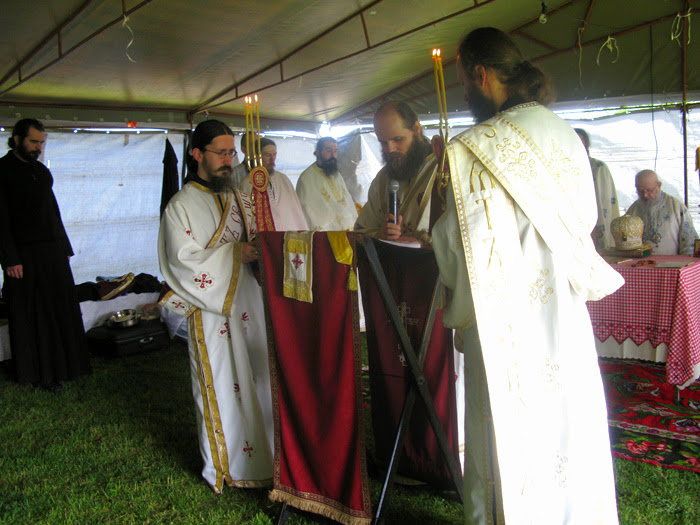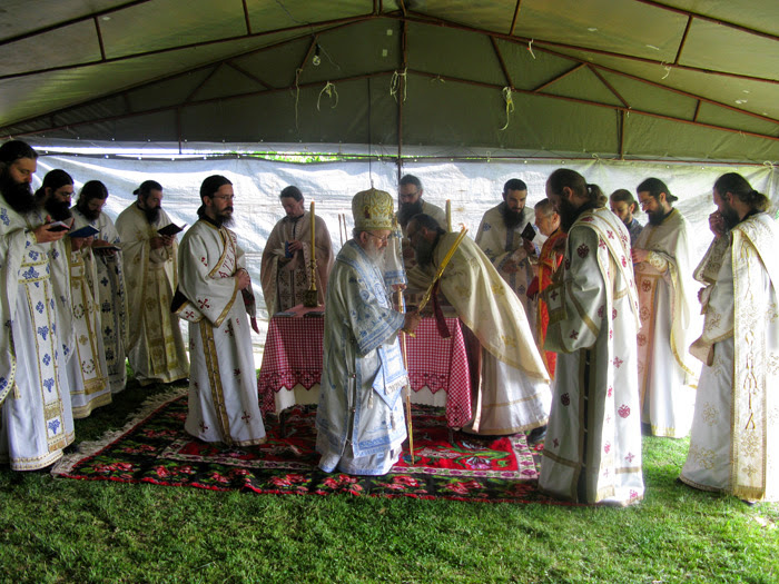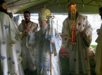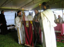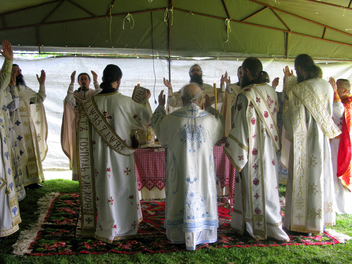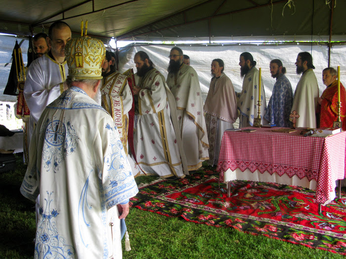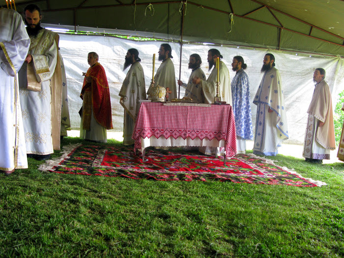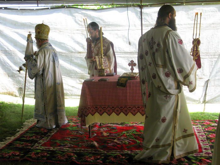 Свету архијерејску Литургију служио је Његово Преосвештенство Епископ рашко-призренски и косовско-метохијски у егзилу Г.Г. Артемије уз саслуживање двадесетак свештеника, свештеномонаха и свештенођакона, клирика наше Епархије. Служба је у недостатку цркве и капеле служена под шатором.